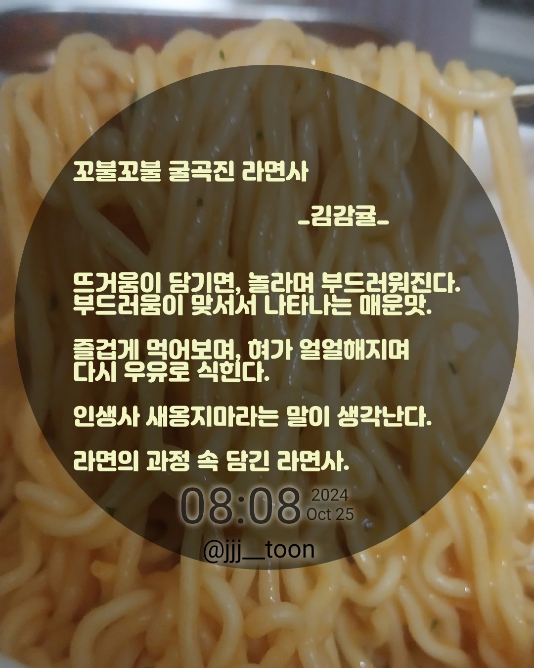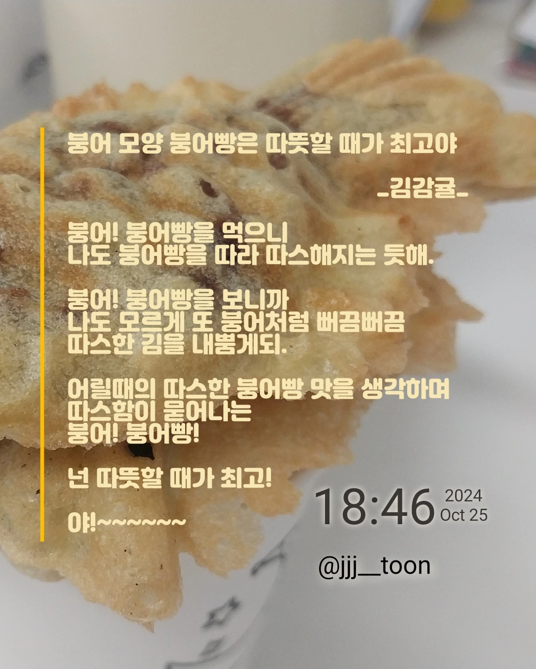 오전에 전 날 저녁에 먹은 라면을 바탕으로 시를 써보고, 오후에는 직장에서 동료가 준 붕어빵을 보며 시를 썼다.