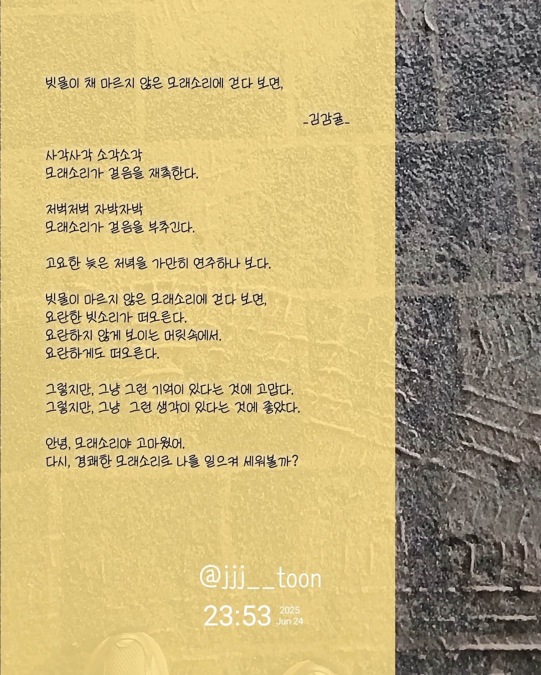 빗물이 마르지 않은 모래소리에 걷다 보면,