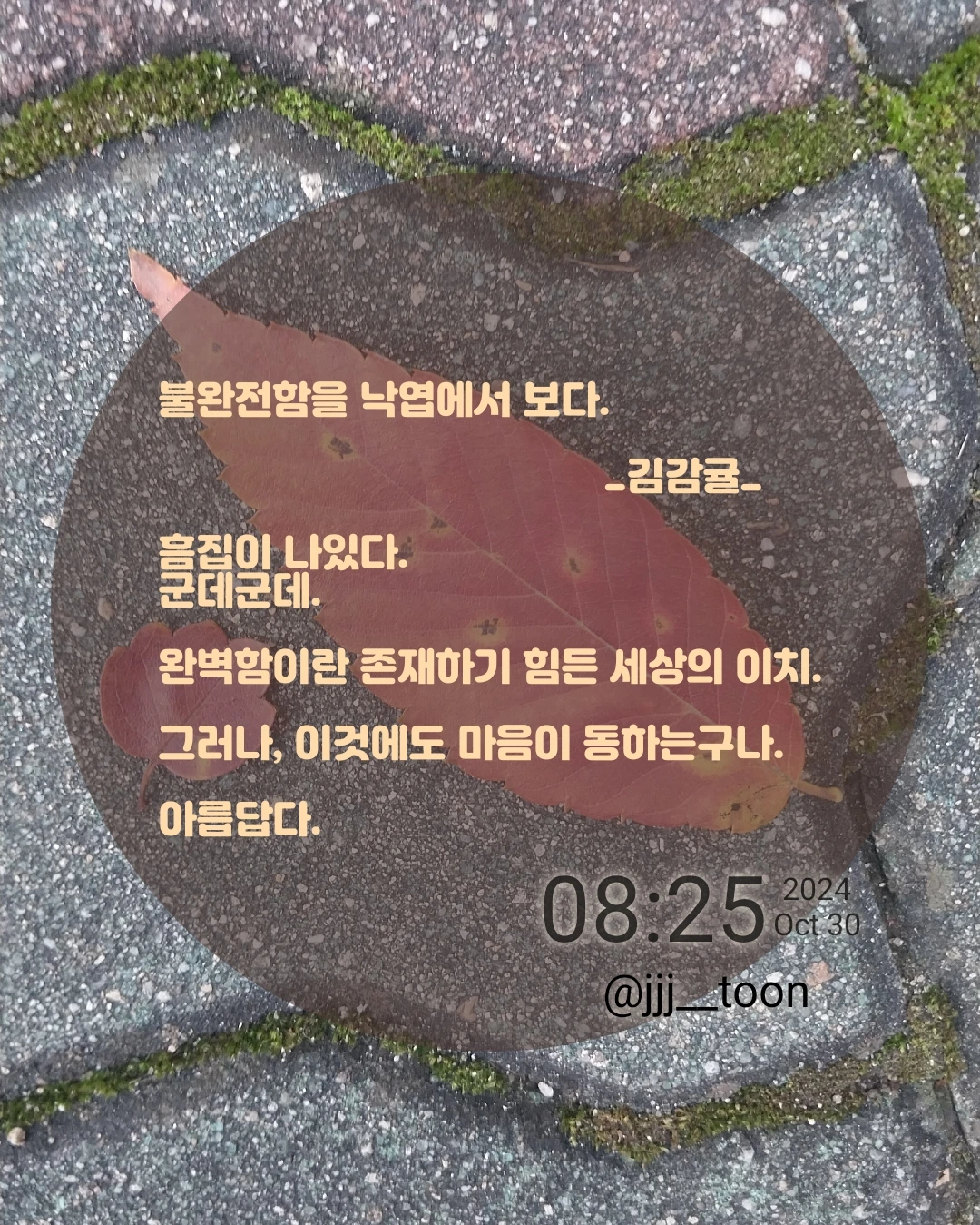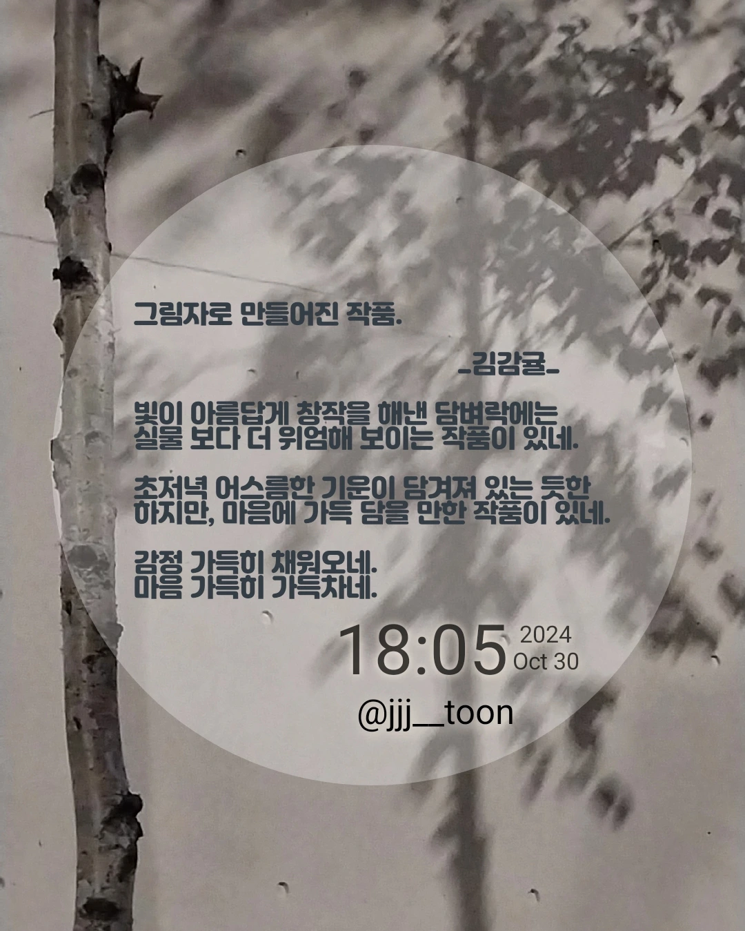 김감귤의 브런치입니다. 시, 짧은 글, 일기를 쓰기도 하며, 자유롭게 글을 쓰고 생각을 표현하는 활동을 좋아합니다. 개인 가치관이나 경험에 비춰 글을 읽을 수 있다고 생각합니다.