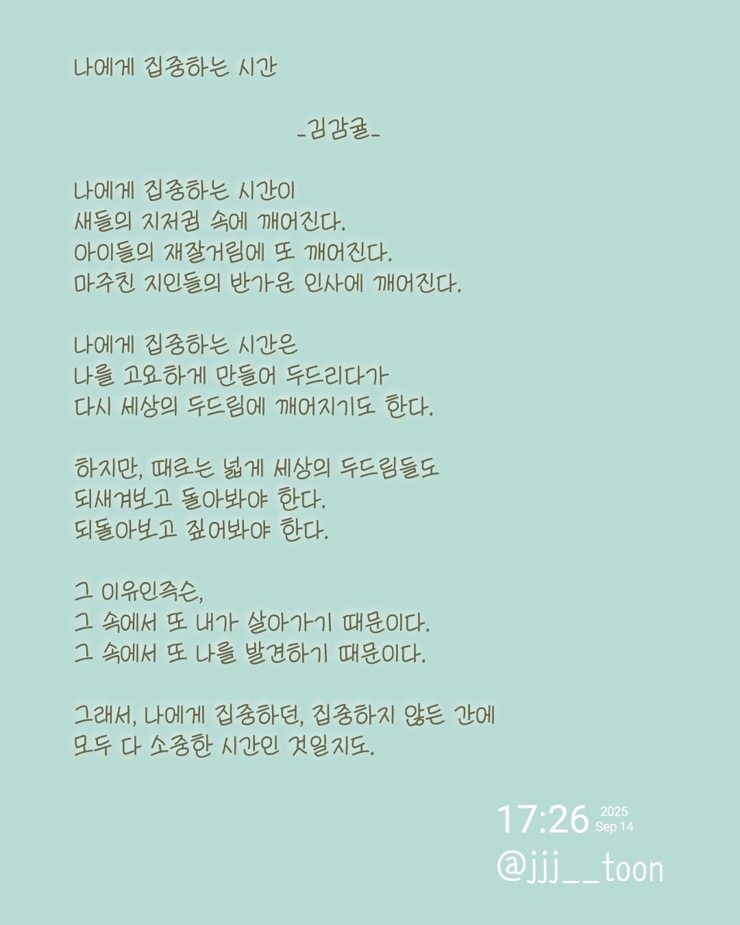 고요하게 나에게 집중하다가 세상의 모습도 바라보며 써 본 소소한 시