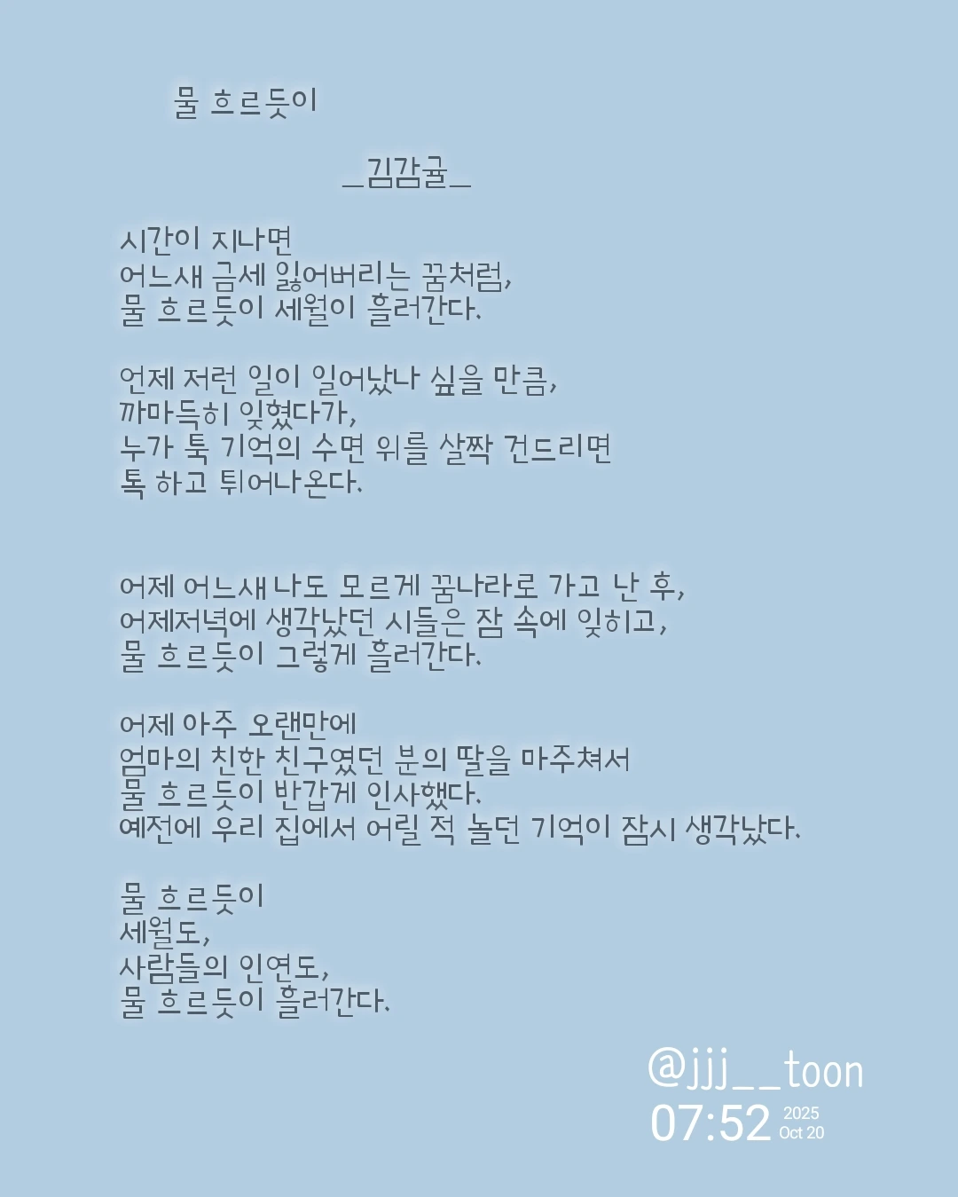 물 흐르듯이 세월이 흘러간다.