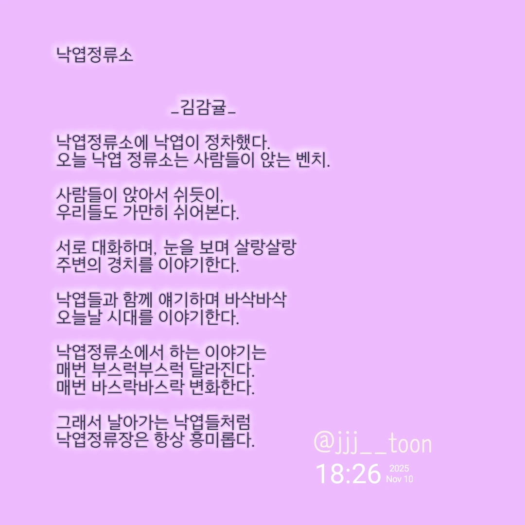 오늘 낙엽 정류소는 사람들이 앉는 벤치.