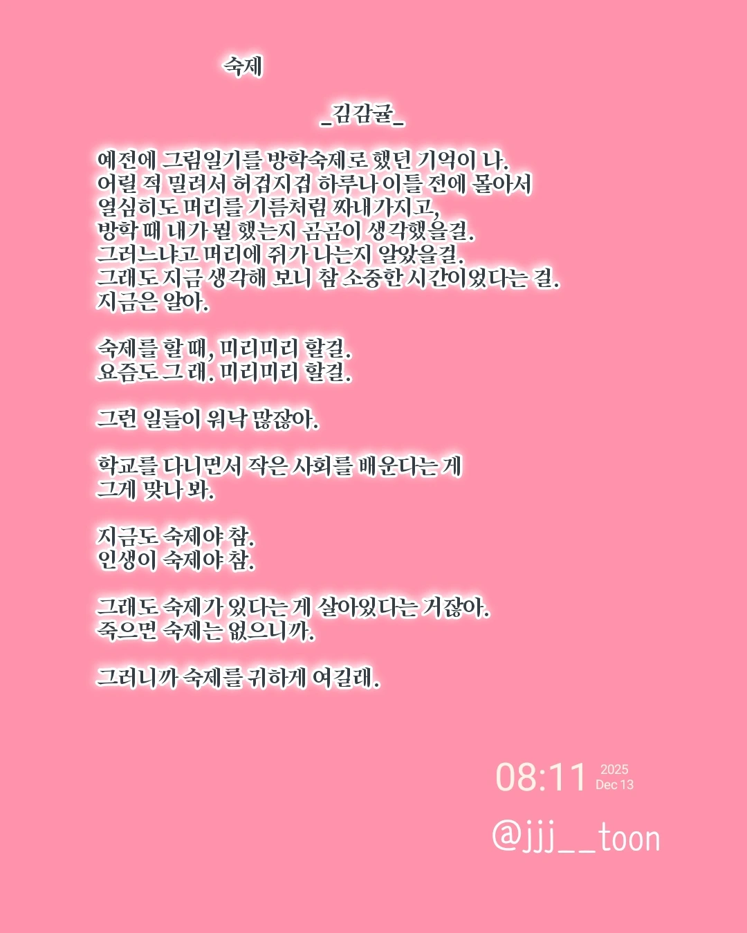 그래도 숙제가 있다는 게 살아있다는 거잖아.