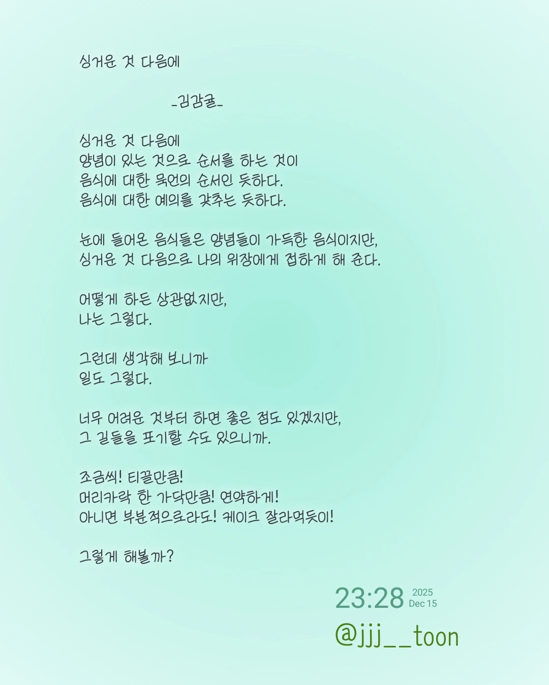음식을 먹다가 생각해서 써 본 소소한 시 한 편,