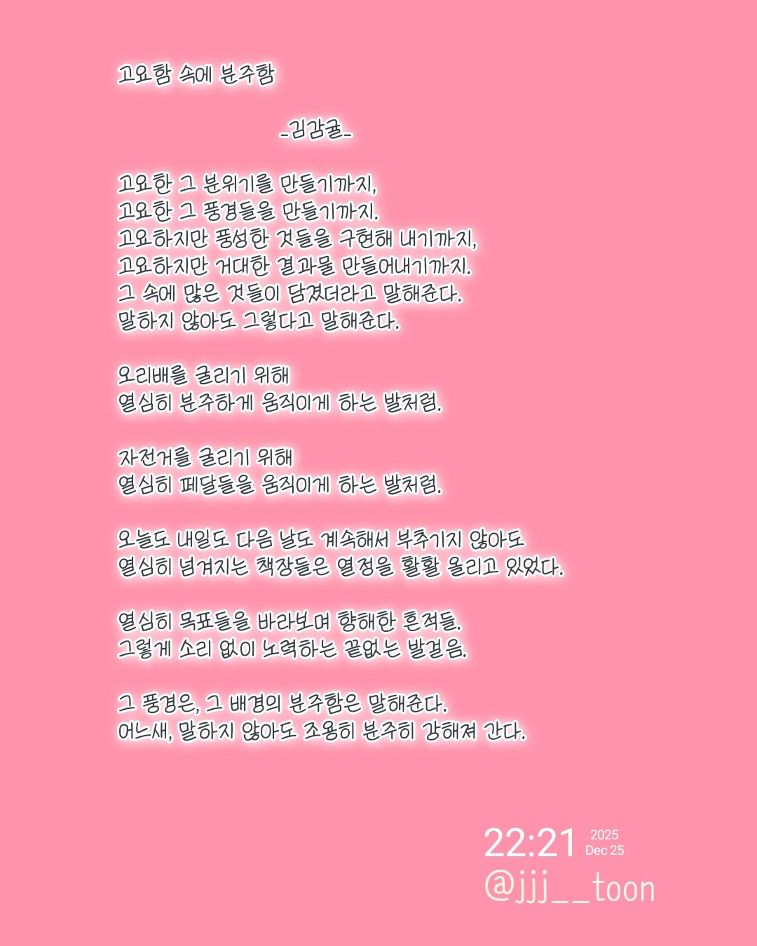 그렇게 소리 없이 노력하는 끝없는 발걸음.