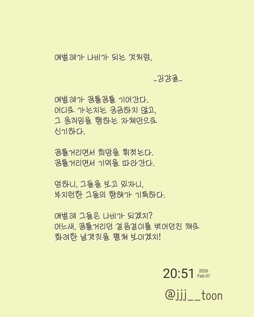 오늘 하루도 희망을 꿈틀꿈틀거리며 써보면서 쓴 시 한 편,
