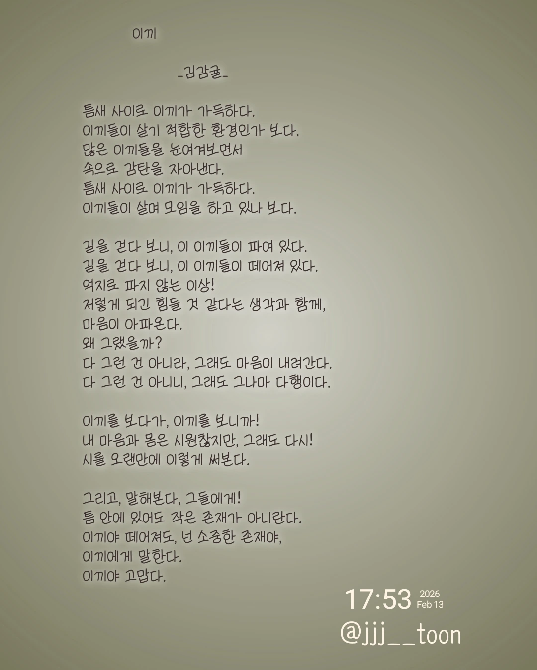 **그동안 몸살기운이 심하고 열이 심해서, 시를 쓰기가 힘들었다. 핑계면 핑계일지 모르겠지만......