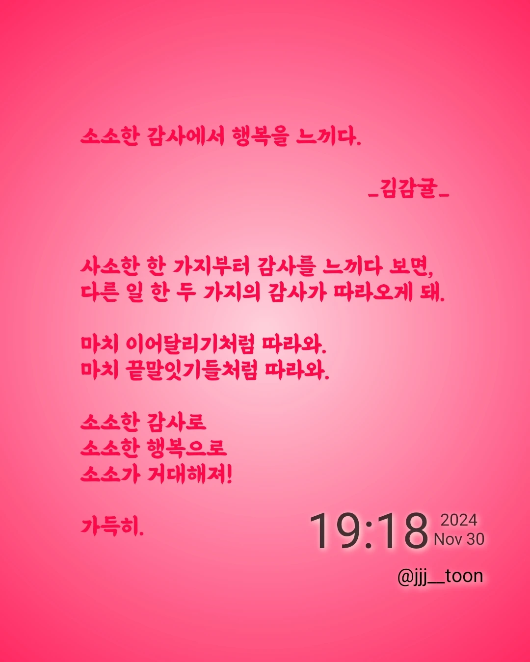 김감귤의 브런치입니다. 시, 짧은 글, 일기를 쓰기도 하며, 자유롭게 글을 쓰고 생각을 표현하는 활동을 좋아합니다. 개인 가치관이나 경험에 비춰 글을 읽을 수 있다고 생각합니다.