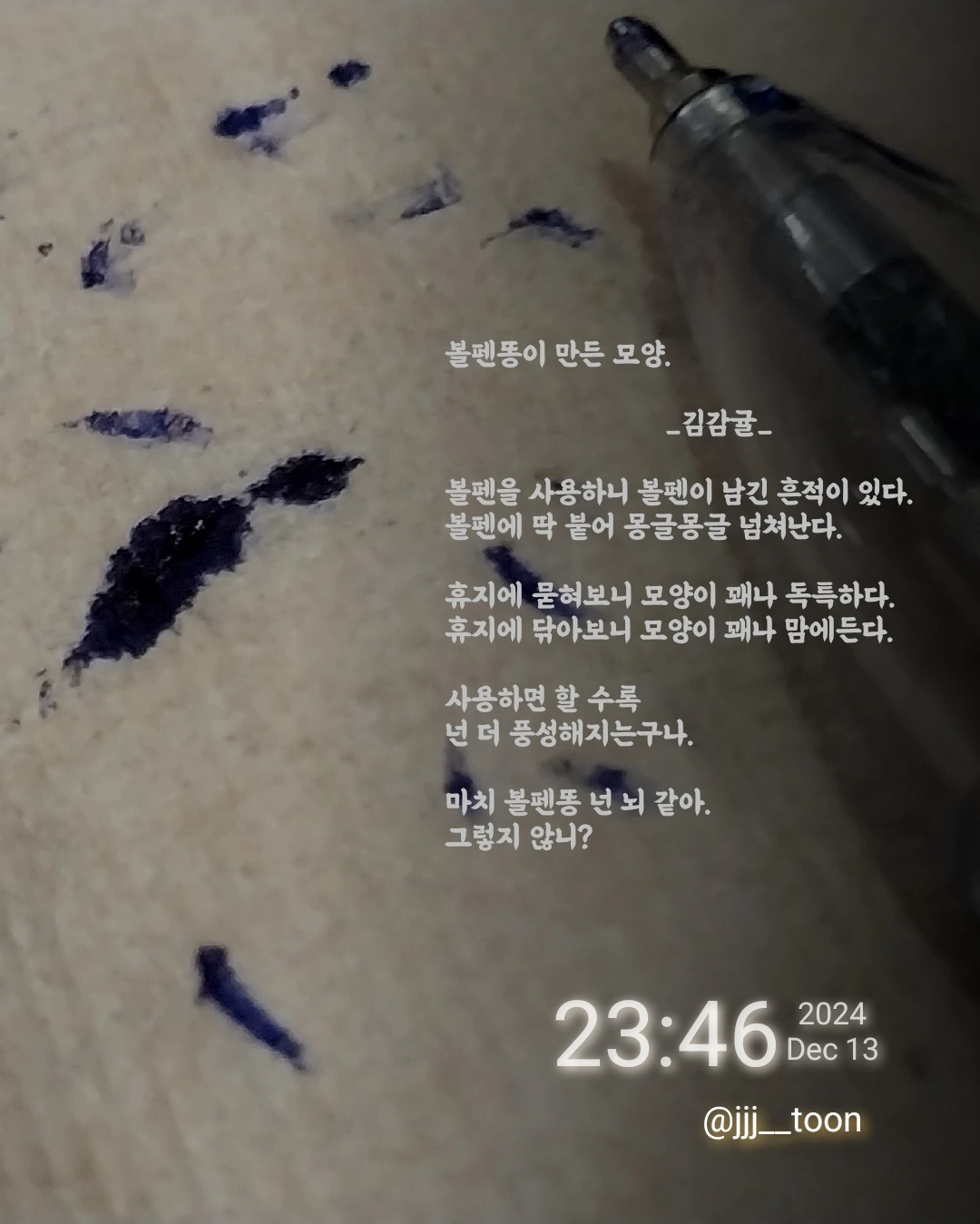 김감귤의 브런치입니다. 시, 짧은 글, 일기를 쓰기도 하며, 자유롭게 글을 쓰고 생각을 표현하는 활동을 좋아합니다. 개인 가치관이나 경험에 비춰 글을 읽을 수 있다고 생각합니다.