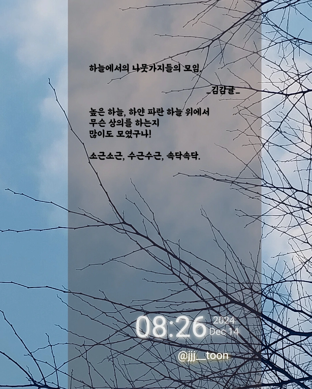 김감귤의 브런치입니다. 시, 짧은 글, 일기를 쓰기도 하며, 자유롭게 글을 쓰고 생각을 표현하는 활동을 좋아합니다. 개인 가치관이나 경험에 비춰 글을 읽을 수 있다고 생각합니다.