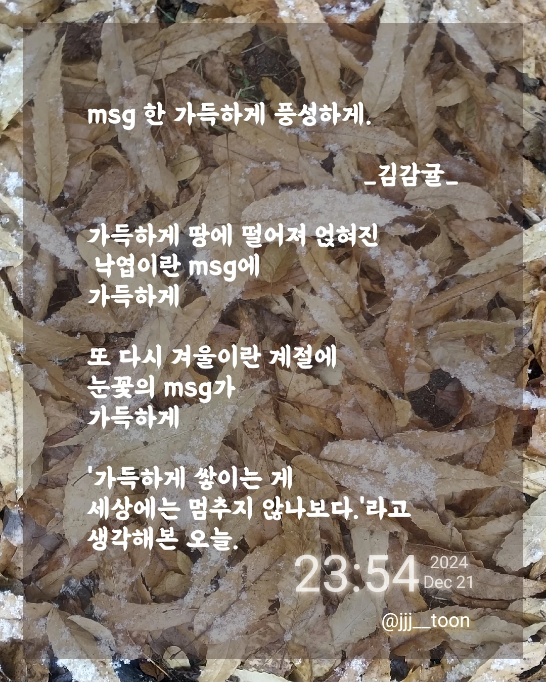 김감귤의 브런치입니다. 시, 짧은 글, 일기를 쓰기도 하며, 자유롭게 글을 쓰고 생각을 표현하는 활동을 좋아합니다. 개인 가치관이나 경험에 비춰 글을 읽을 수 있다고 생각합니다.