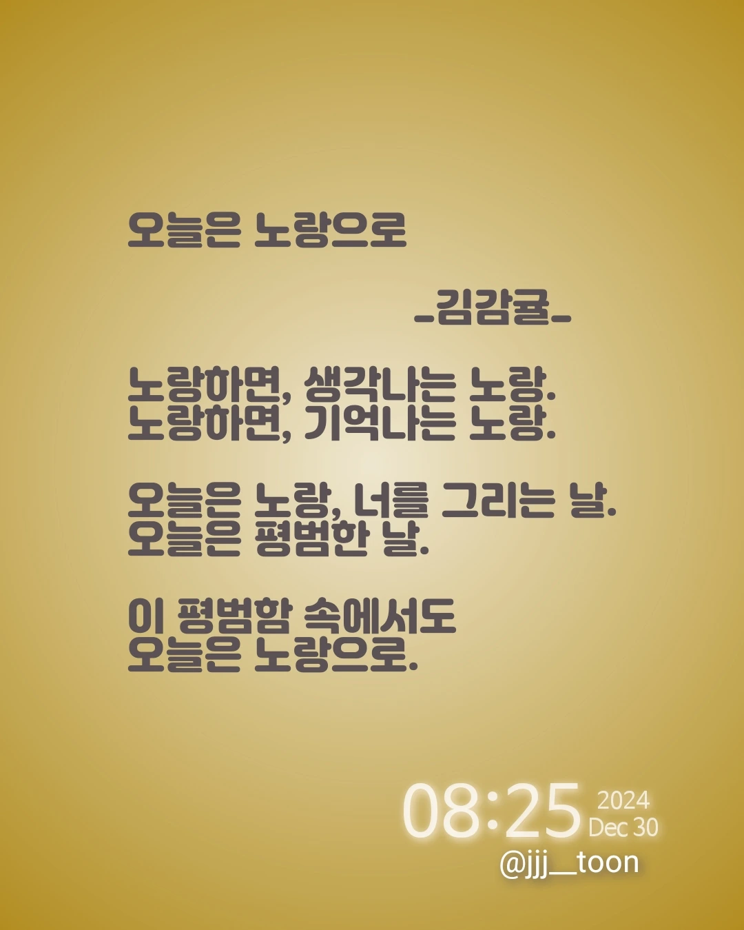 김감귤의 브런치입니다. 시, 짧은 글, 일기를 쓰기도 하며, 자유롭게 글을 쓰고 생각을 표현하는 활동을 좋아합니다. 개인 가치관이나 경험에 비춰 글을 읽을 수 있다고 생각합니다.