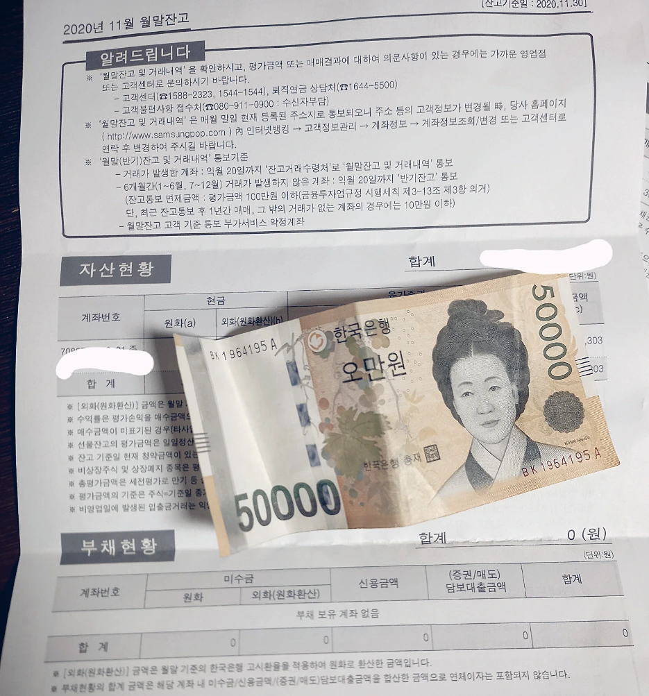 할머니, 할아버지께 받은 5만원을 투자해달라고 주었다.