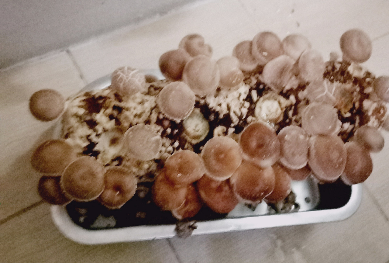 매일 구경하기 심심하지 않게 버섯이 쑥쑥 자랍니다. 어느 정도 자라난 후 솎아낸 버섯은 프라이팬에 볶아