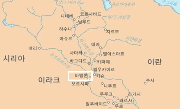흰색 표시가 바빌론의 위치다. 그 외에도 크고 작은 나라가 빼곡하다.