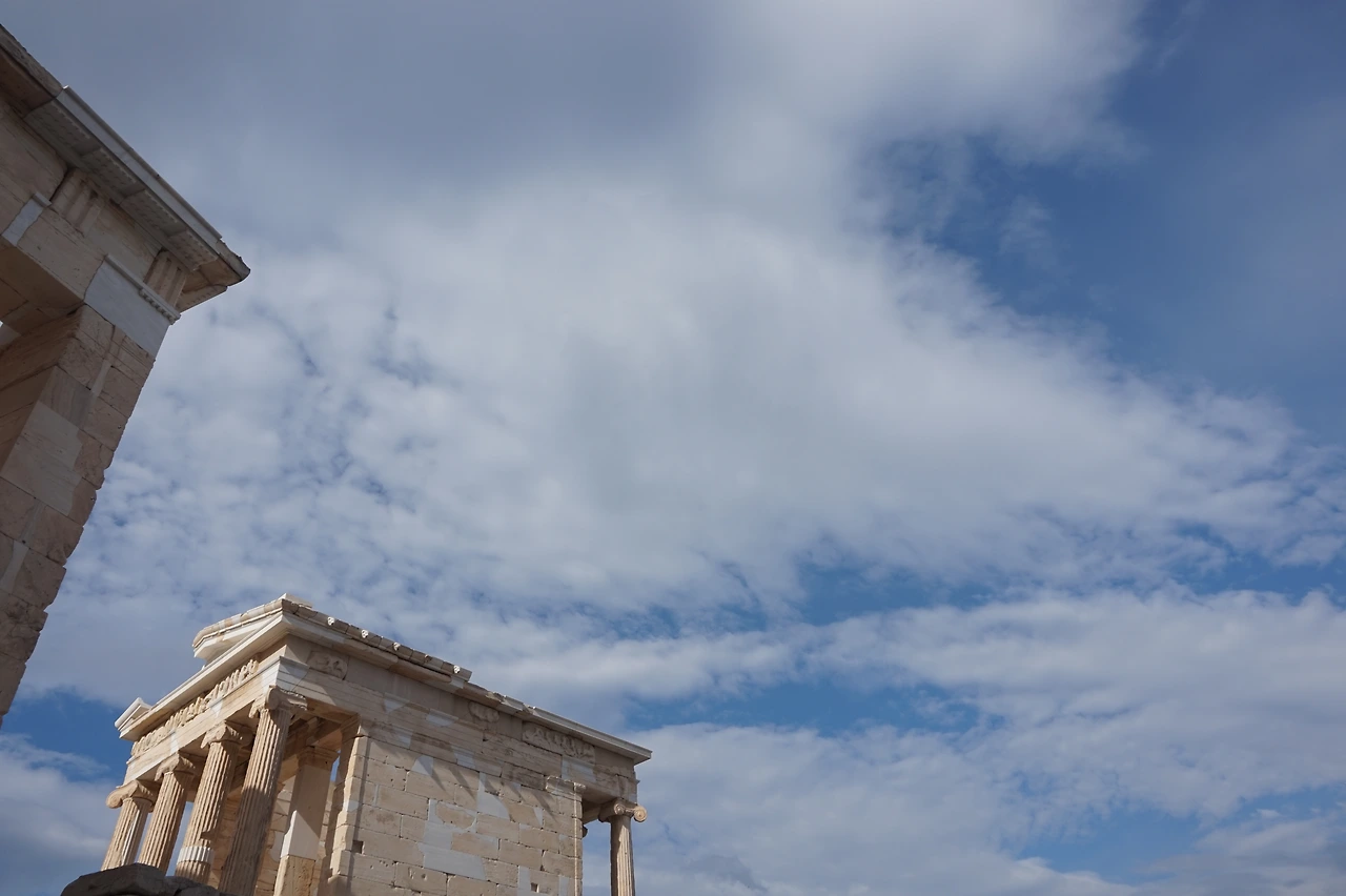 니케의 신전 위로 맑은 하늘이 보였다. 언제 비가 왔나......