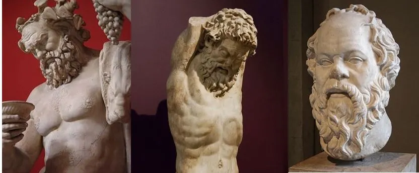내 장담하건대, 이분은 조각가들의 작업장에 앉아 있는 실레노스들을 빼닮았네. 조각가들이 목적이나 피리를 들고 있도록 만들었는데, 열어보면 그 안에 작은 신상들이 들어 있는 실레노스들 말일세. 내 또 장담하건대, 이분은 사튀로스인 마르쉬아스도 닮았네. 소크라테스 선생님, 선생님 외모가 이들을 닮았다는 것은 선생님 자신도 부인하지 못하시겠지요…….