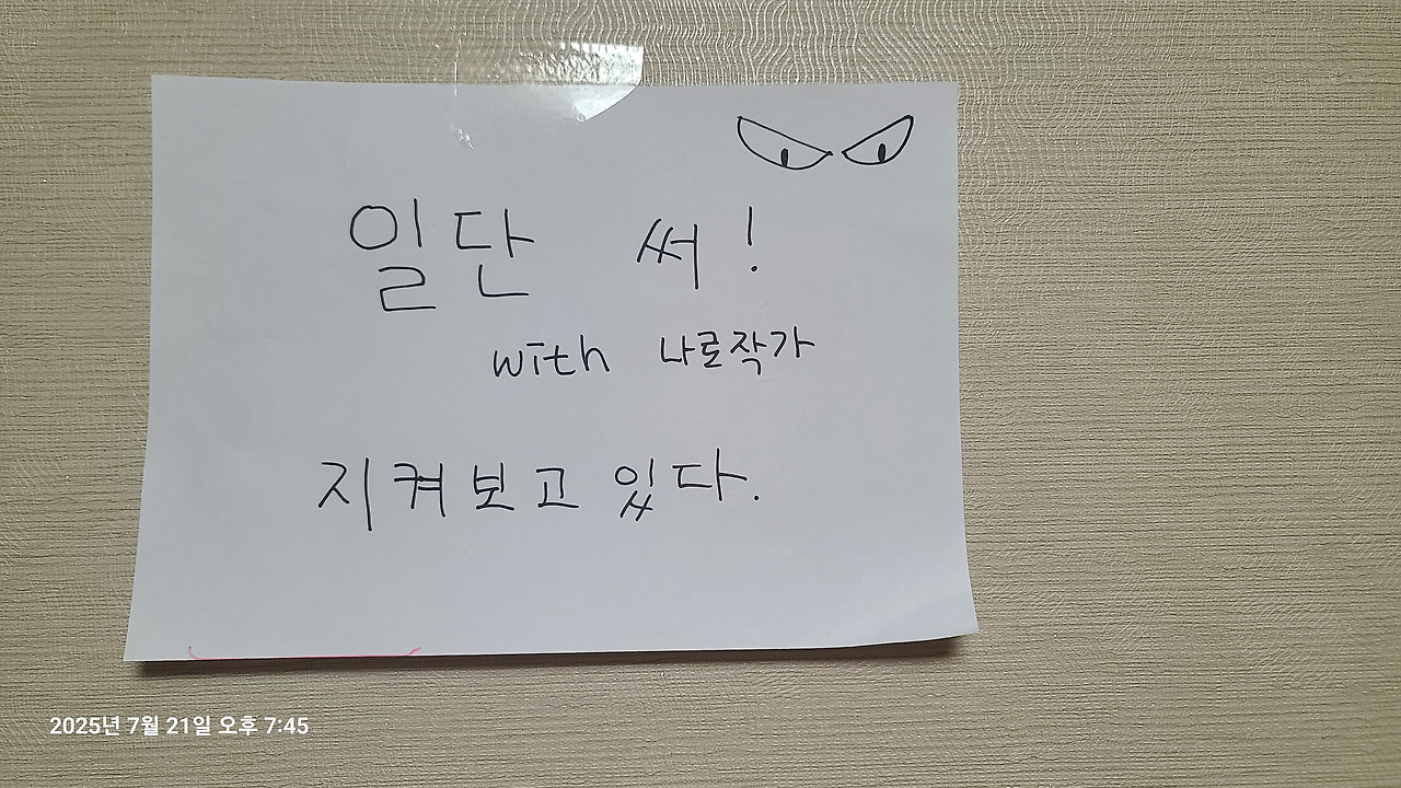 작업실에 붙인 댓글부적 :일단 써! 두드려!