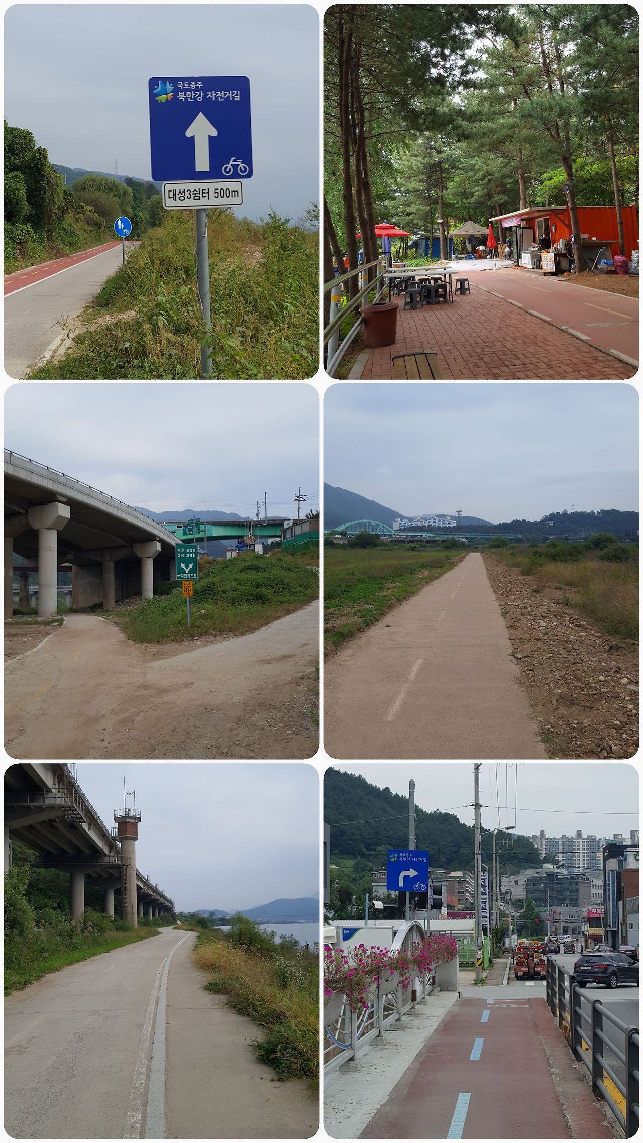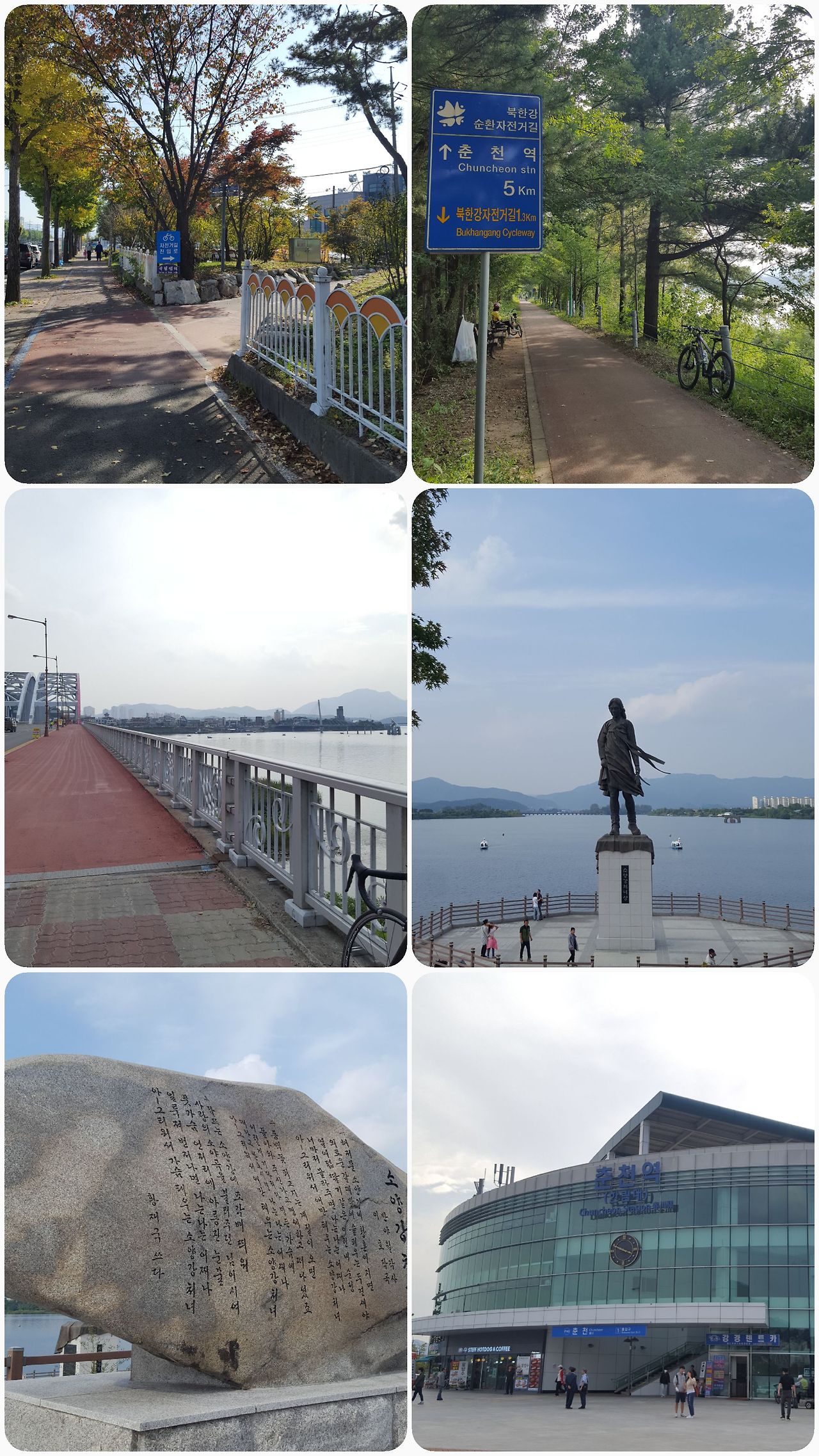 시원한 강바람을 즐기다 보면 아기자기한 자전거길이 분위기 있게 이어지고 애니메이션 박물관이 나온다. 휴식할 수 있는 벤치가 많아서 강을 보면서 잠시 휴식을 하는 것도 좋다. 조금 더 가면 아름다운 테크 길이 나온다. 그리 길지는 않지만 구비구비 강과 어우러진 모습이 종주의 피로감을 싹 씻어준다. 이 길이 지나면 종주길 마지막 인증센터가 나오고 도장을 찍는 라이더들로 붐빈다. 여기서 오른쪽으로 돌아가면 신매대교가 나온다. 드디어 춘천 입성이다.