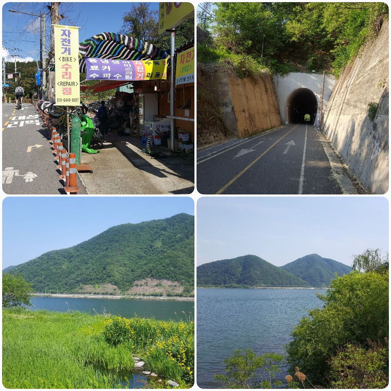 10km 지점부터 아래 사진 속 터널까지 편의점이 3군데 정도 더 있으므로 라이딩에 필요한 물과 간식을 충전해야 한다. 터널을 지나면 편의점이 자전거길과 멀리 떨어져 있으므로 미리미리 준비해야 한다. 터널까지는 한 번의 업힐이 더 있고 정상 부근엔 자전거 수리점도 있으니 기억해놓자. 터널이 지나면 대성리역 부근을 지나게 된다. 대성리역이 멀리 보이는 강변길을 천천히 달리면서 고즈넉함을 즐기시길.