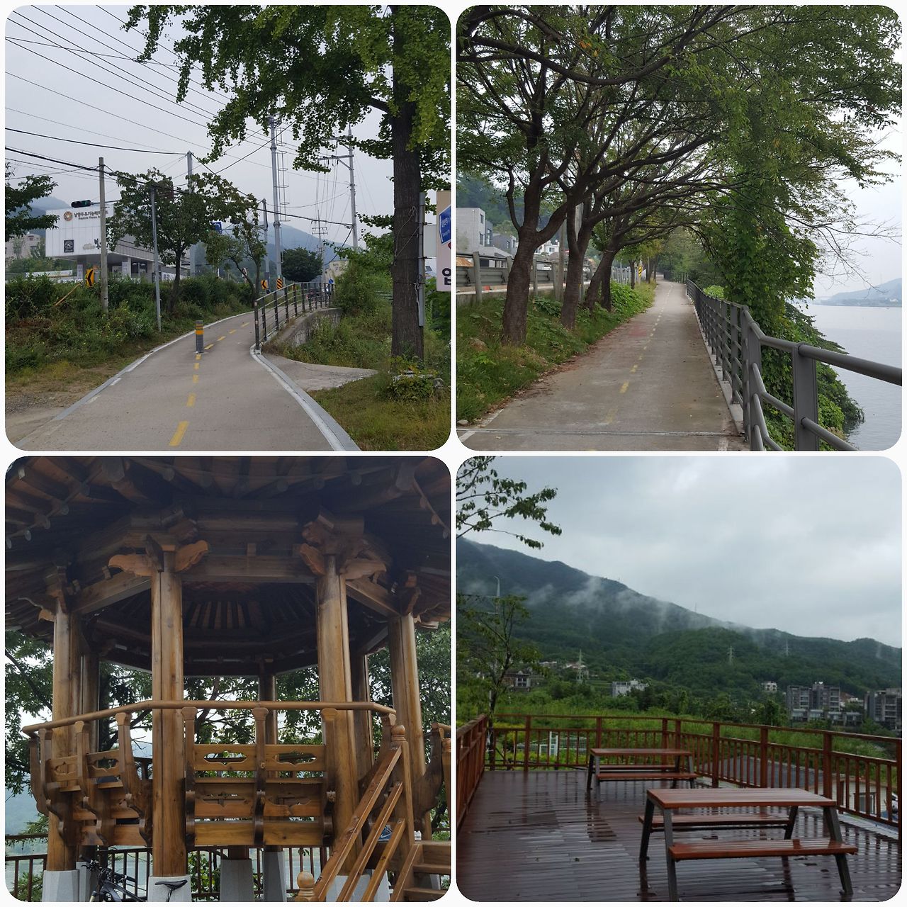 이 구간을 지나면 카페와 음식점들이 있는 자동차 도로 옆의 자전거길로 들어선다. 주말에는 카페로 들어가는 차들이 많아서 이 역시 주의해서 지나자. 여기를 지나면 다시 강 옆 자전거길로 들어서고 첫 번째 업힐이 나온다. 업힐 정상에는 정자와 쉴 수 있는 시설들이 있으니 잠시 쉬어도 좋다.
