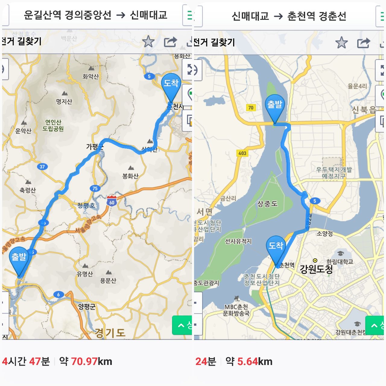 경로 : 운길산역 -> 춘천역으로 이어지는 북한강 종주길 75km