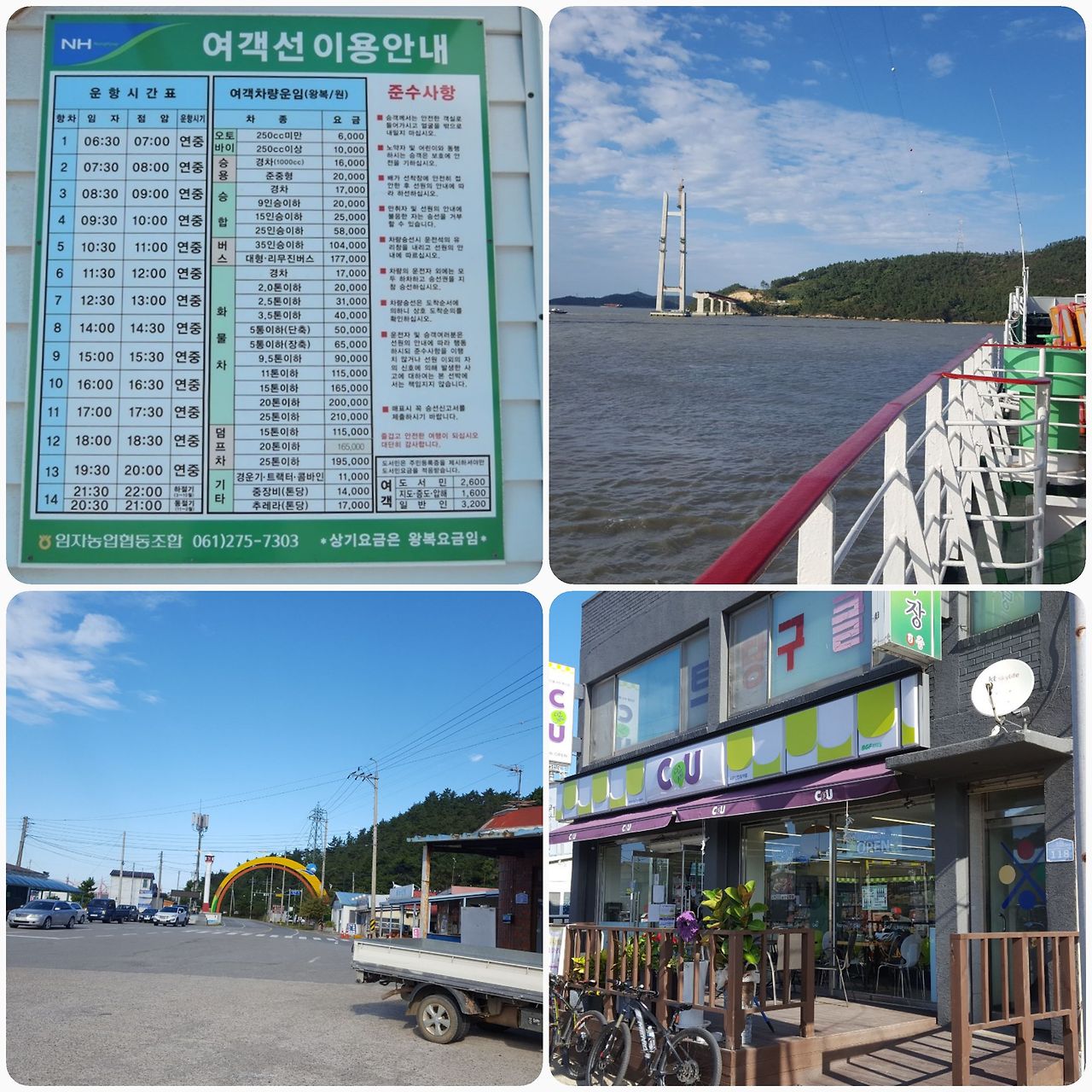 점암선착장에서 오전 9시 배를 탔다. 신분증이 필요하다. 요금은 성인이 왕복 3,200원이고 섬에서 나올 때 한꺼번에 정산하면 된다. 승선 후 약 15분 만에 임자도 진리선착장에 도착했다. 선착장 부근에는 작은 슈퍼가 있고 여기서 약 5분 거리에 비교적 큰 CU편의점이 있다. 우리는 거기에서 아침식사를 하고 김밥과 물 간식 등을 구입했다. 식사를 마치고 오전 10:20에 출발했다.