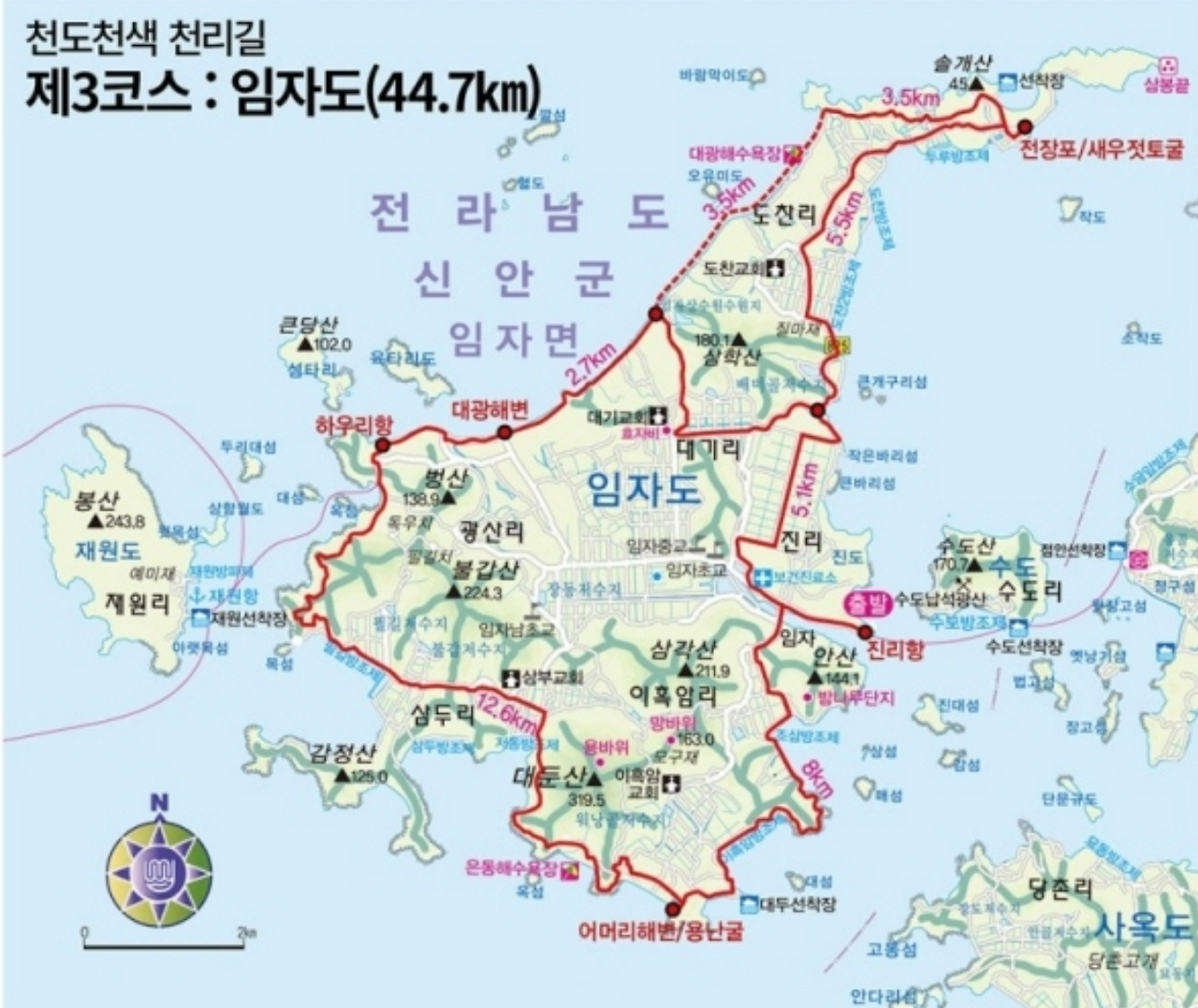 일주코스 : 진리선착장에서 시계 반대방향으로 일주(약 45km)