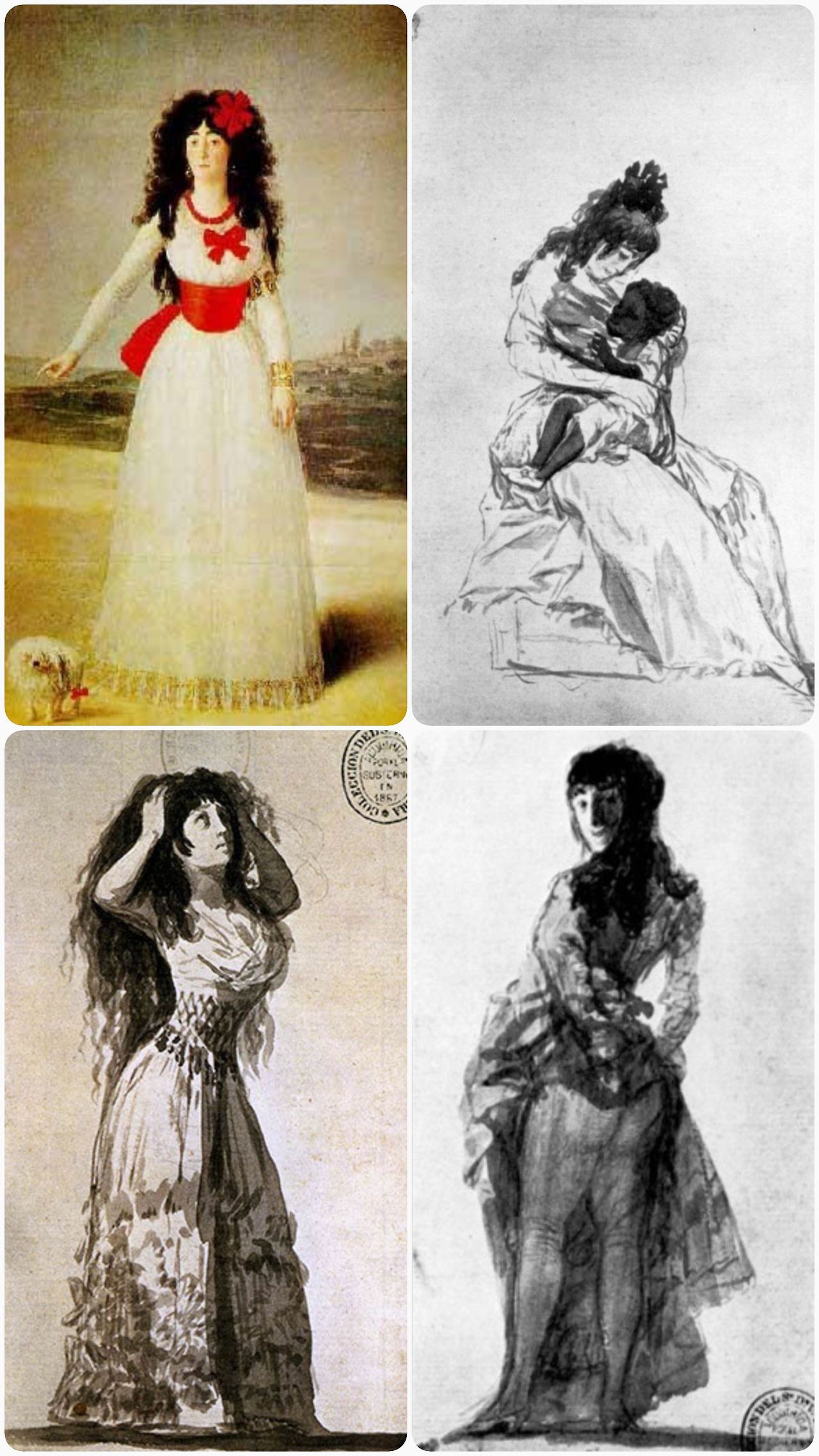 그렇게 유명화가로 이름을 날리던 고야는 앞에서 언급한 알바 공작부인과 20살의 나이 차이임에도 불구하고 사랑에 빠지게 됩니다. 고야의 어떤 매력이 지체 높은 여인의 마음을 빼앗았을까요. 알바 부인은 남편이 죽은 후 몇 년 동안 집중적으로 고야의 모델로 그림 속에 등장합니다.