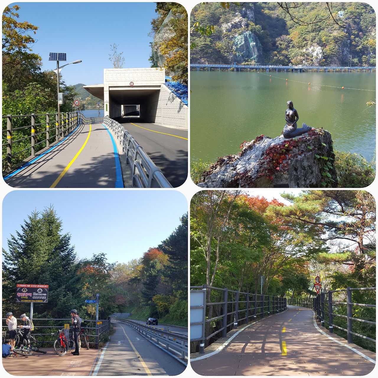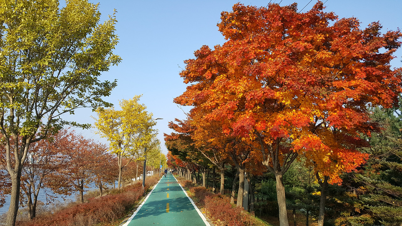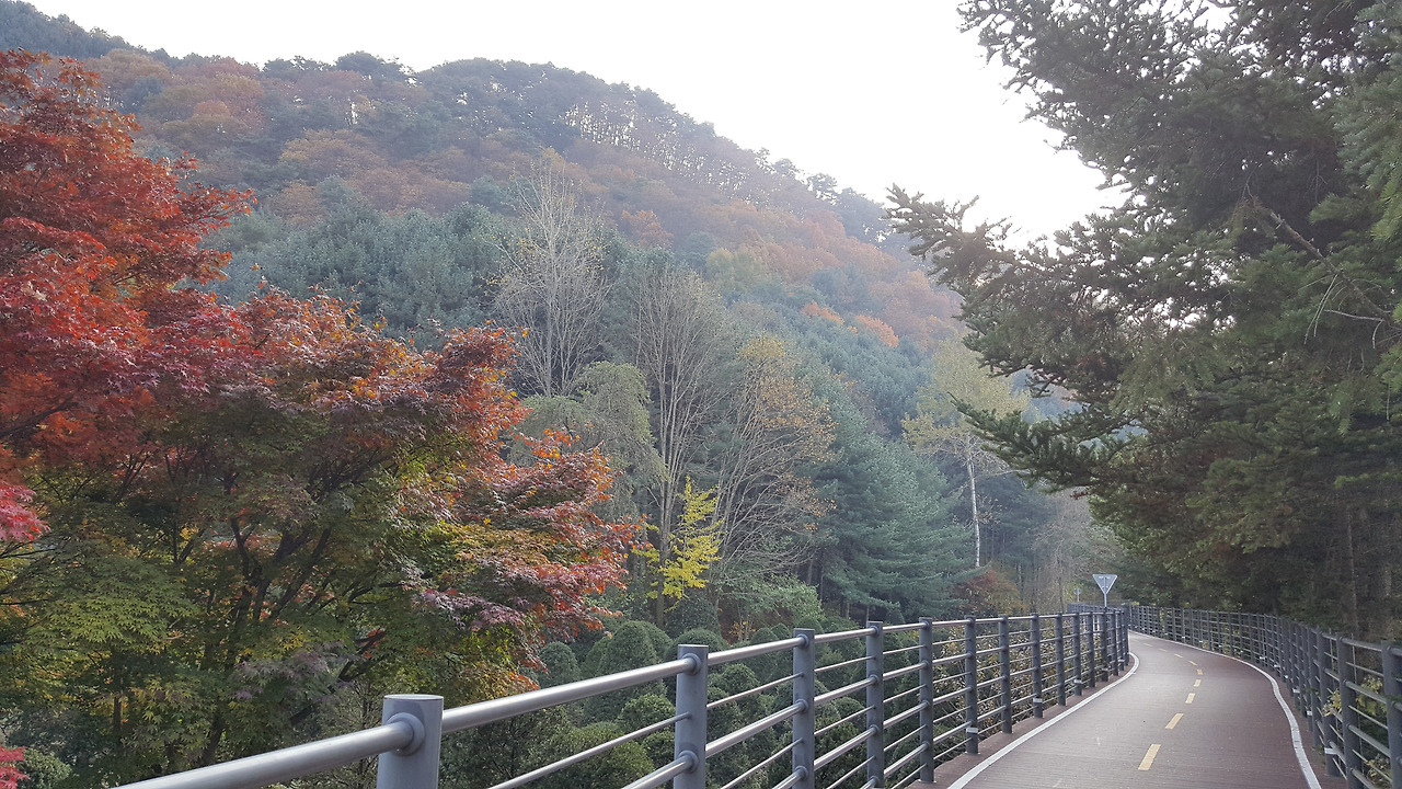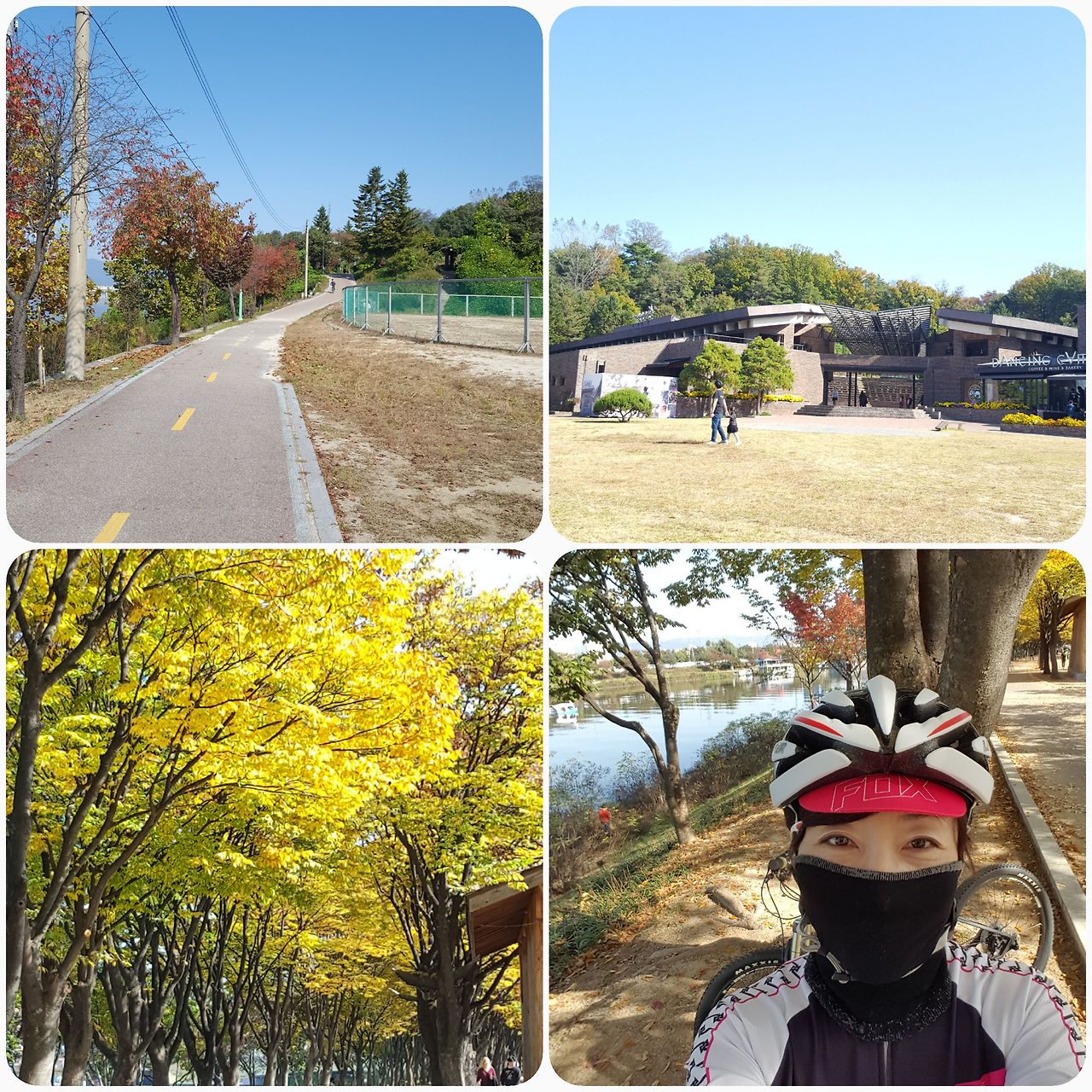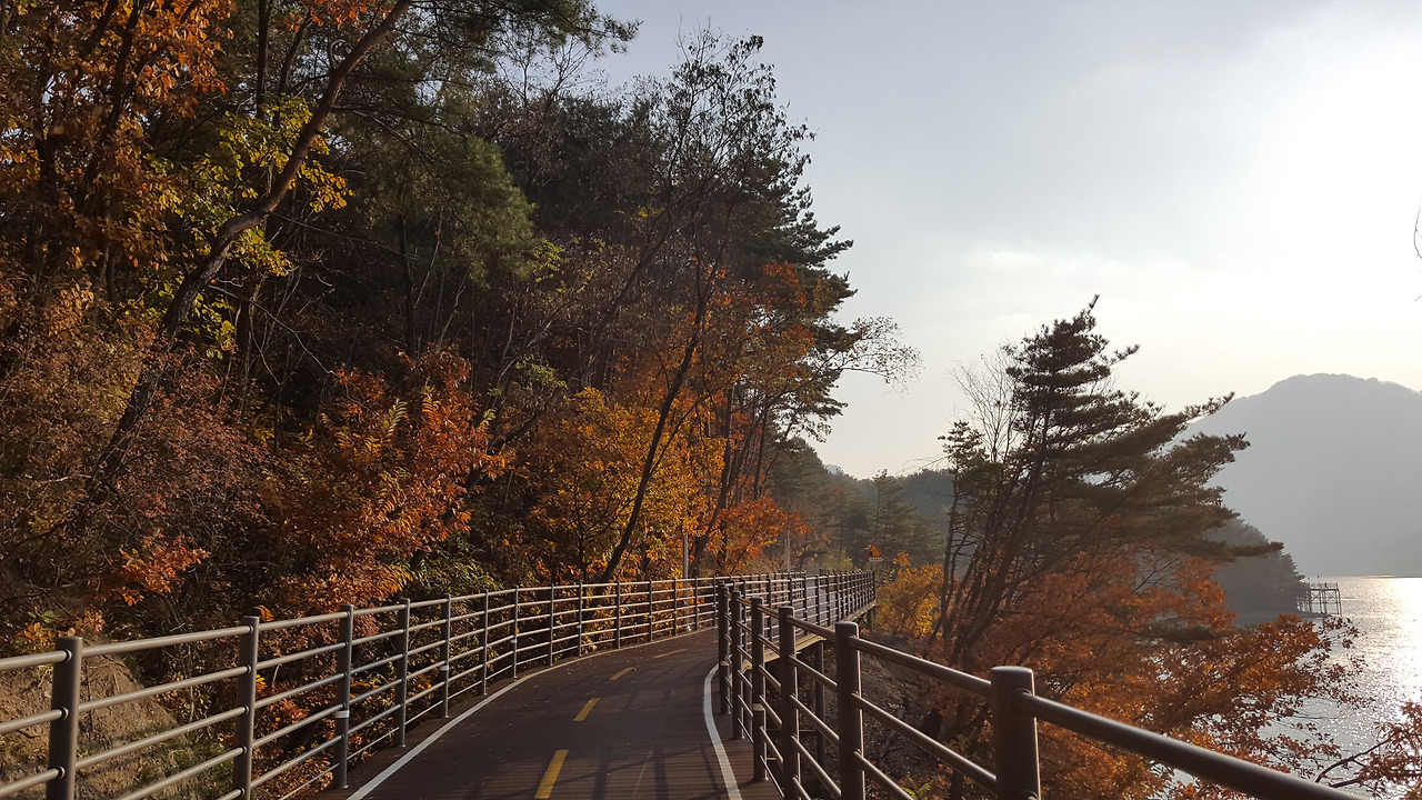 호수와 단풍과 그림 같은 자전거길이 있다.
