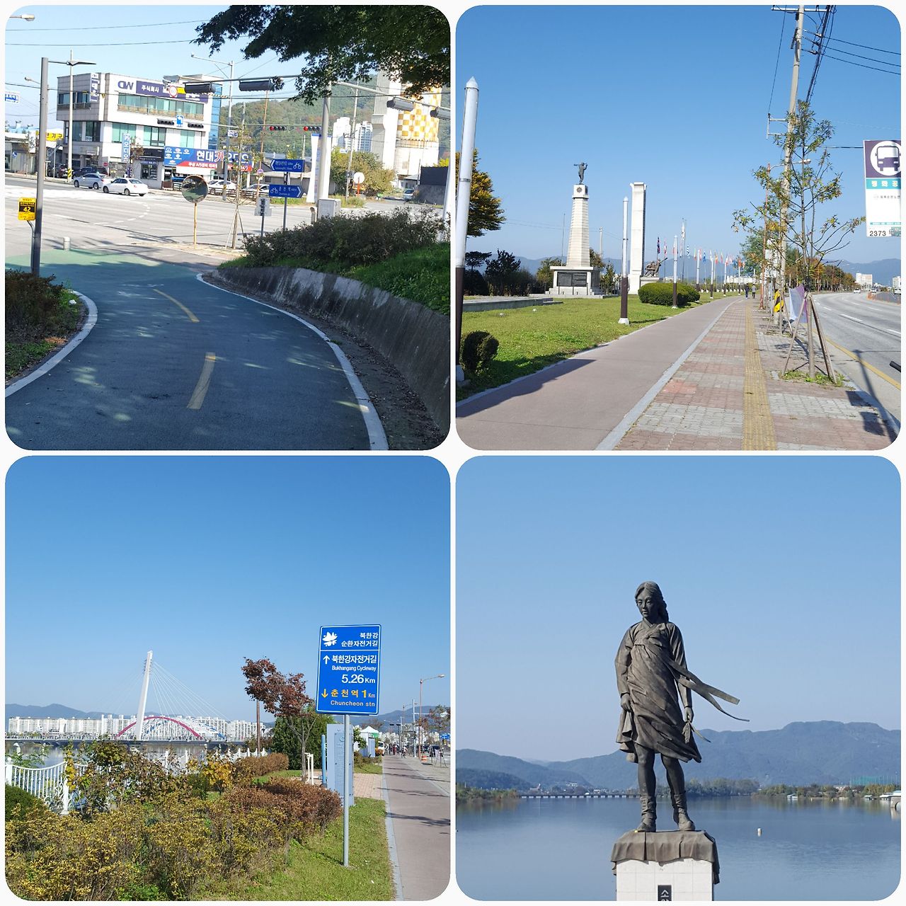 공지천 길이 끝나고 계속 진행하면 소양강 처녀상과 만나는 큰 길로 진입하게 된다. 넓은 대로를 따라 시원스레 달리다 보면 소양강 처녀상과 만난다. 9월 말 춘천으로의 라이딩 후 한 달 여만의 조우이다. 처녀상과 잠시 눈인사를 하고 좌회전하여 소양 2교로 진입한다.