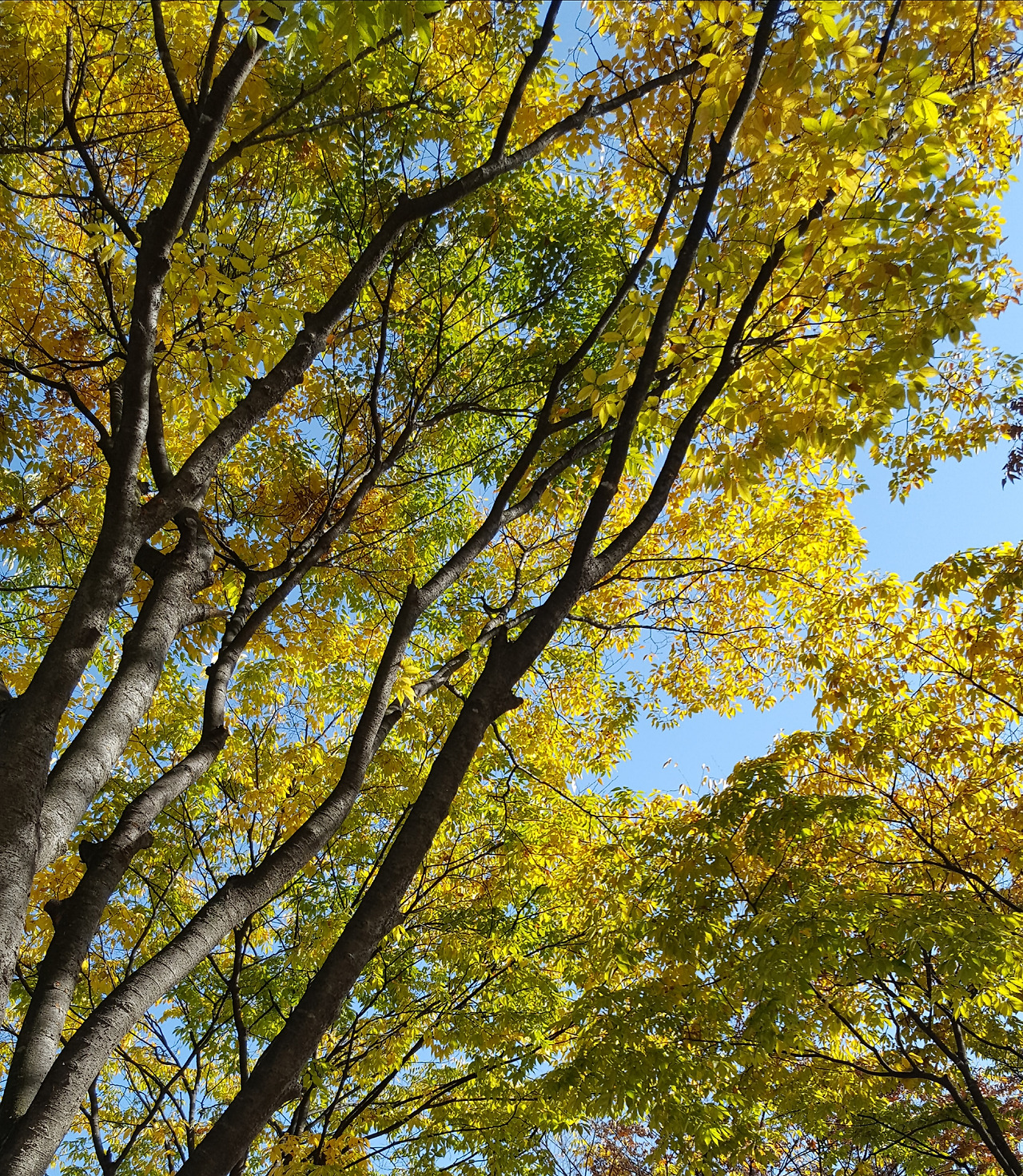 춘천 수변공원 진입로는 짧지만 가파른 오르막이다. 의암호가 내려다 보이는 언덕 위에 쉼터와 분위기 좋은 카페, 갤러리 등이 있어 항상 많은 사람들로 붐빈다. 좀 더 진행하면 공연장이 나온다. 공연장 옆 자전거길 은행나무가 노랗게 물들었다. 그 노란 몽환에 취해 잠시 호수 옆 벤치에 앉아 가을 상념에 빠져 본다.