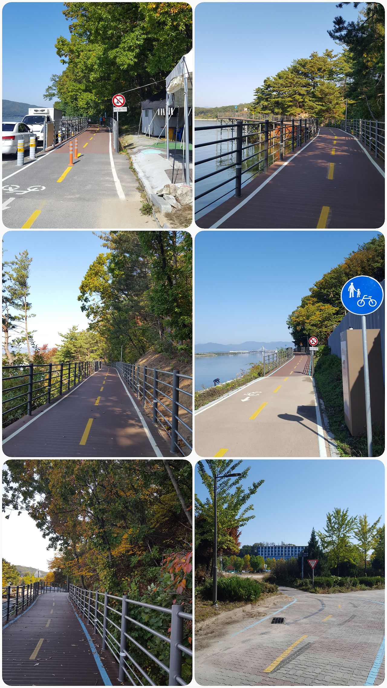 소양 2 대교를 건너 좌회전하면 다시 자전거길로 들어선다. 호반을 옆에 두고 달리는 길이 아름답다. 갖가지 색으로 물든 단풍이 호수 위로 비치는 햇살과 어우러져 낭만적인 풍경을 선사한다. 이 길은 신매대교로 연결되고 신매대교 인증센터를 지나 마지막 데크길로 연결된다.