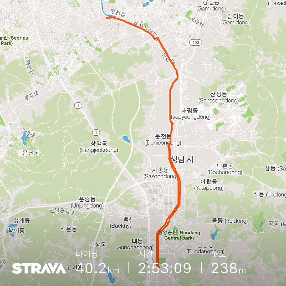 일정 : 탄천길 ( 정자동~학여울습지 입구) 왕복 40km 2시간 50분 소요(휴식시간 20분 포함)