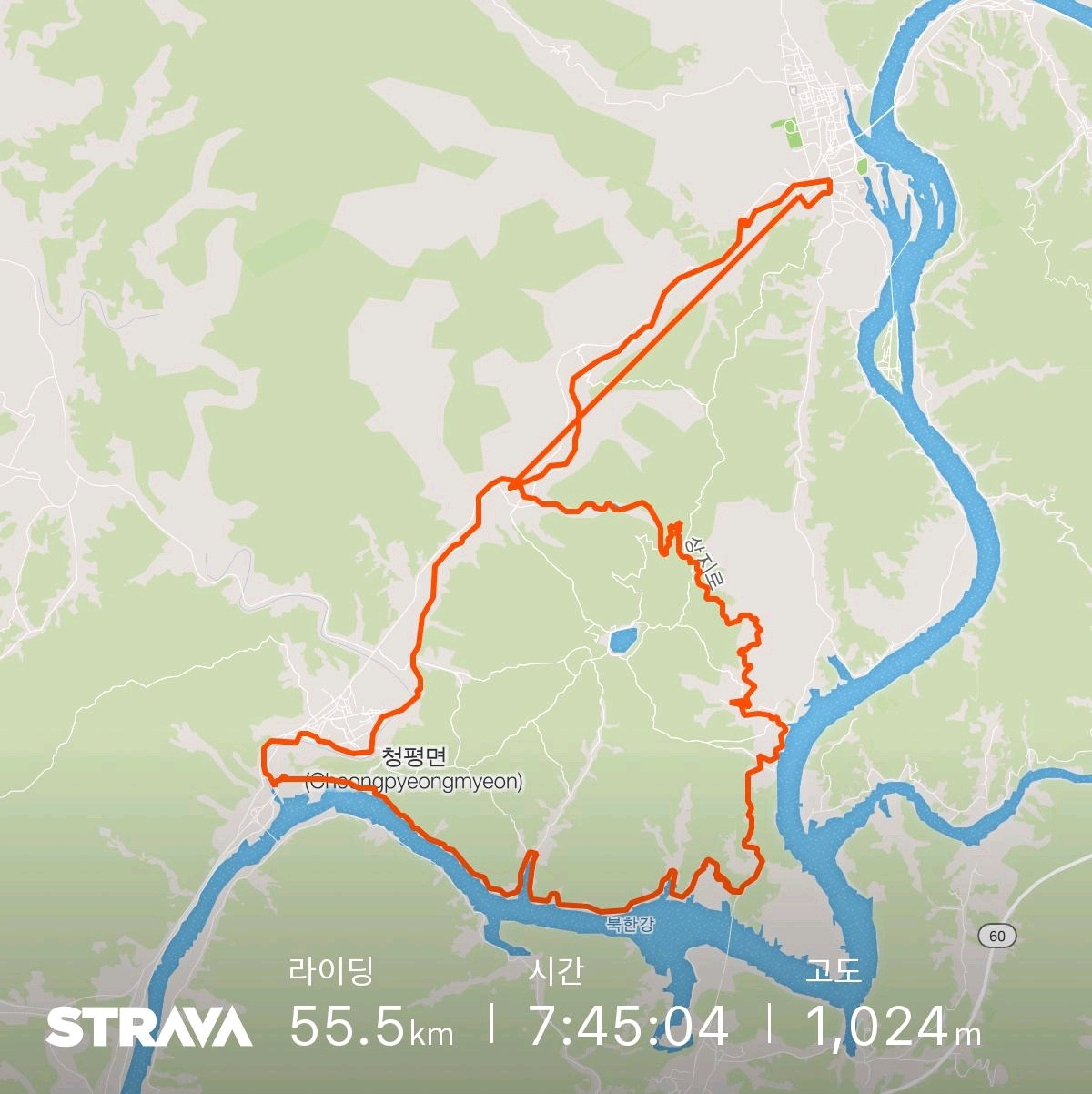 가평역~호명산~상천역~가평역 55km 2018.2.24