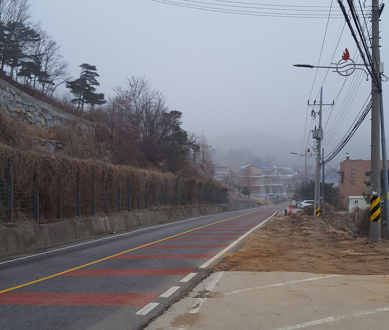 출발하고 보니 자전거길이 찻길과는 구분되게 만들어져 있었다. 물론 군데군데 깨지고 상태가 좋지 않아 로드 자전거에겐 무리가 될 수 있는 구간은 찻길을 이용했다. 토요일 아침이라 통행량이 적어서 무리 없이 진행할 수 있었다.