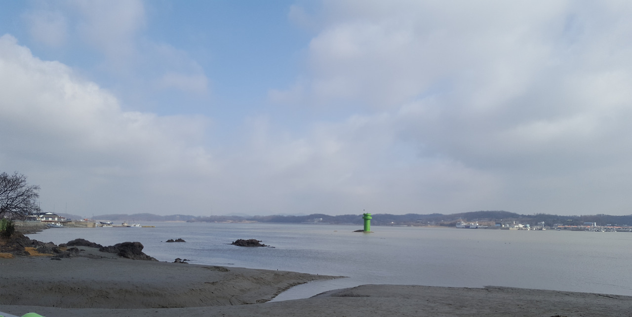 서해바다가 막 깨어난 듯 수줍게 우리를 맞는다. 돈대 옆에는 편의점이 있어 보급도 용이하다.