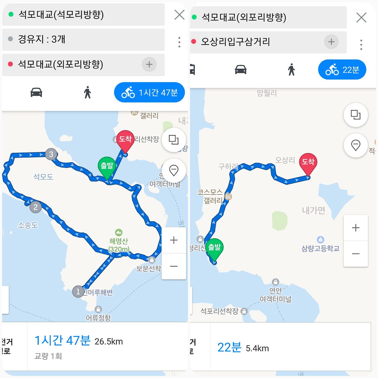 코스 : 강화도 석모대교 ~ 보문 선착장 ~ 민머루해변 ~ 미네랄 온천 ~ 나룻부리항 ~ 석모리 ~ 석모대교 ~ 오상리삼거리 ~ 석모대교 42km (붉은색 지명은 석모도이다)