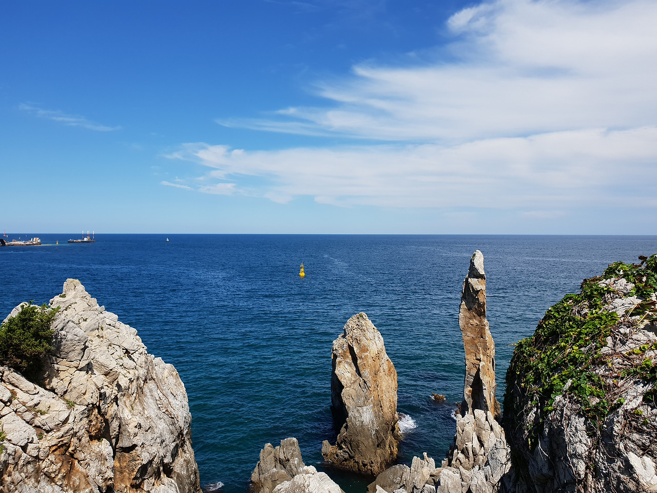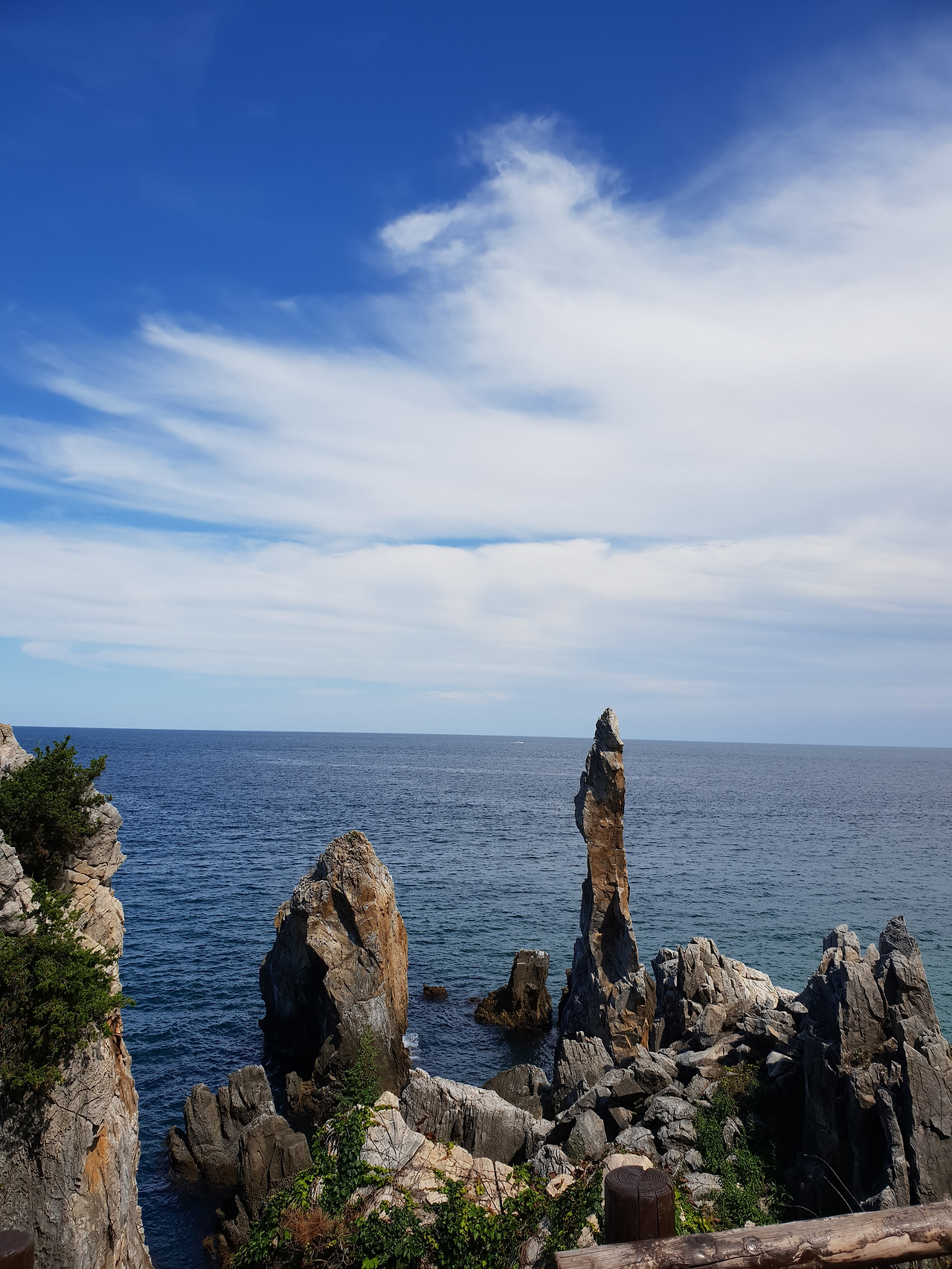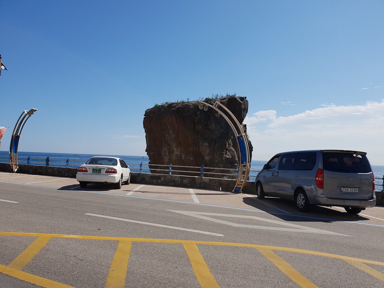 어달해변길은 너무나 아름답다. 가던 길을 멈추고 길가 카페에서 향좋은 커피와 함께 잠시 바다를 즐기기에 손색이 없다. 이 곳을 지나고 묵호를 향하면 길옆에 서있는 까막바위를 만난다. 까마귀가 바위에 새끼를 쳣다하여 이런 이름으로 불리게 되었다 한다. 까막바위옆에는 조선 중엽, 망상현(지금의 묵호동)의 의로운 호장이 문어로 환생해 왜구를 물리쳤다는 전설을 기리기 위한 문어상이 있다. (네이버 지식백과) 이렇게 까막바위도 지나 묵호항으로 향한다.