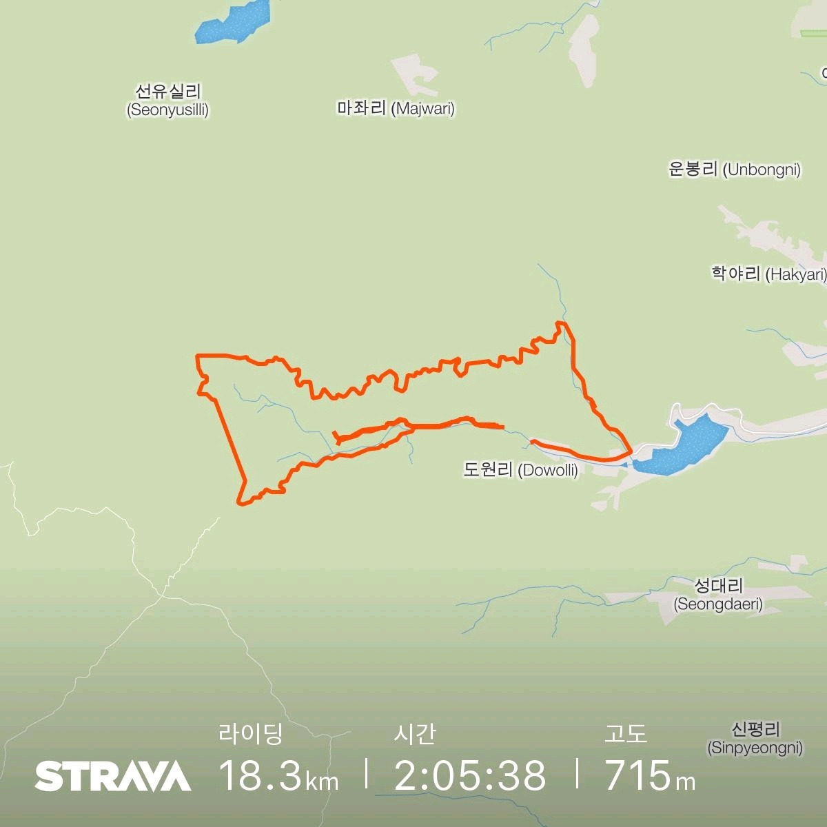 이 곳 도원리 임도는 임도 초보들도 그리 힘들지 않게 달릴 수 있는 코스이다. 거리도 20km 남짓이라 부담없고 잔돌은 많지만 업다운이 힘들지 않다.
