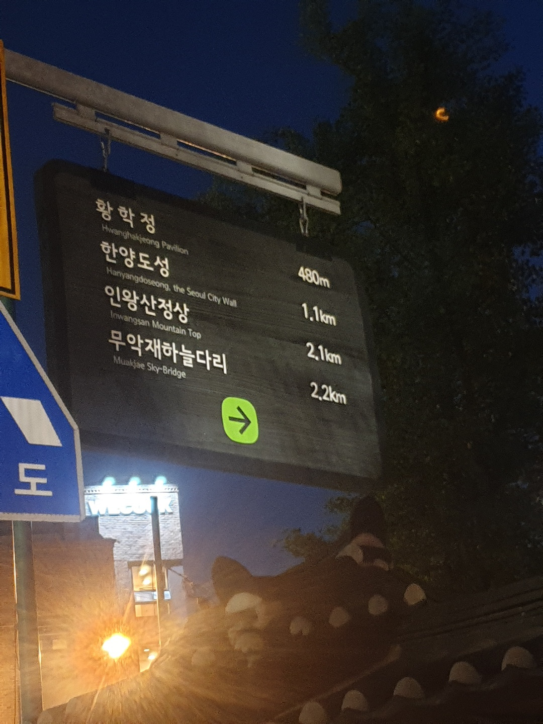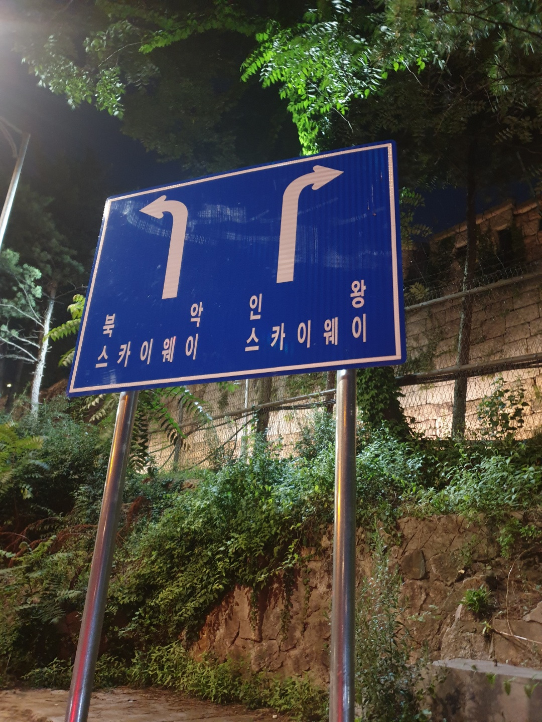 돌아가는 길은 올라온 반대편 쪽, 일명 아리랑고개 방향이나 아니면 올라온 길로 내려가 효자동 쪽으로 방향을 잡아도 된다. 어느 편으로 내려가도 길이 어두우니 조심해야 한다.