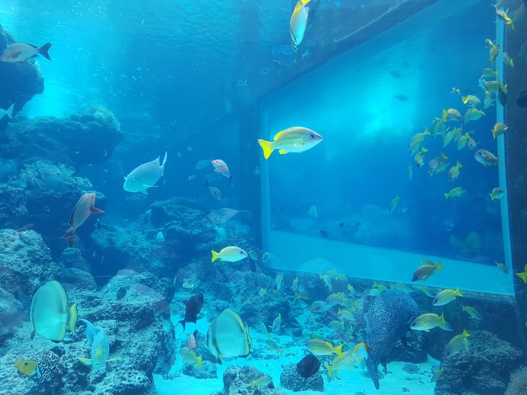 세계 기네스북에 등재되어 있는 가로 약 22m 세로 약 8m 두께 60cm의 아크릴 수조에서