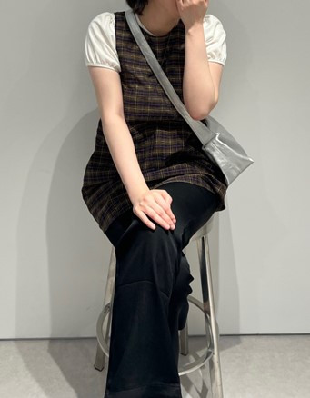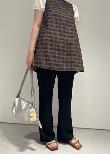 레이어드 룩. 평소에도 레이어드해 입는 걸 좋아하는데요. 여름엔 특히 티셔츠, 바지로 코디가 단조로워질 수 있기 때문에 레이어드할 수 있는 시원한 소재의 옷을 찾는 편이에요. 오늘 착용한 슬리브리스 탑은 시어한 소재라 더운 여름에도 레이어드해 입기 좋아요. 클래식한 체크 패턴이 룩에 포인트를 준다는 점도 마음에 들어요.