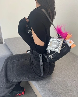 힙하고 시크한 룩. 슬림한 핏의 티셔츠와 발목까지 오는 롱스커트를 매치해 봤어요. 저는 키가 크지 않은 편이라 라인이 길어 보이는 핏을 선호해요. 자칫 단조로워 보일 수 있는 올블랙 코디에 유니크한 운동화와 다채로운 색감의 액세서리로 포인트를 줬어요.