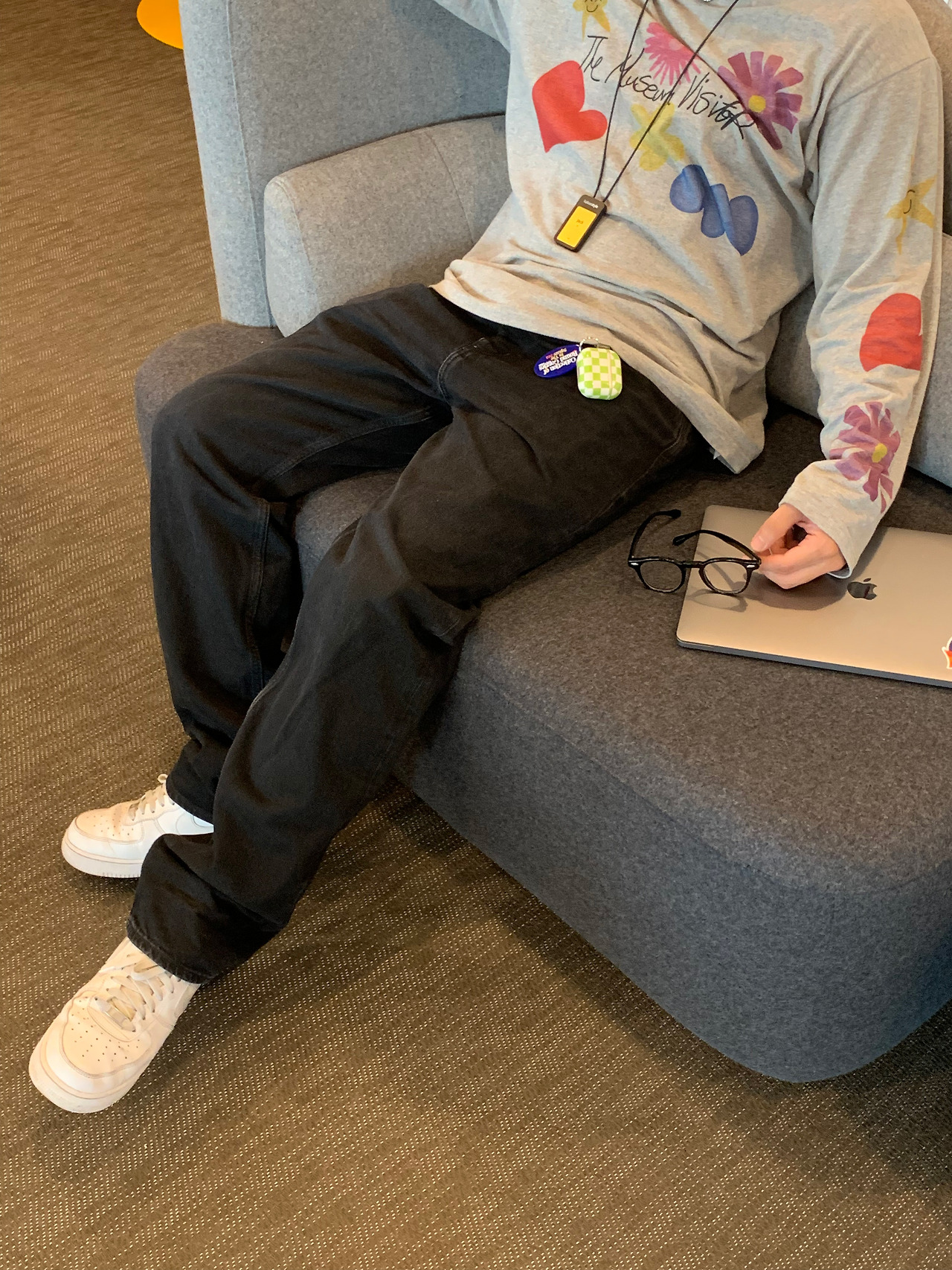 다닐 때 불편하지 않은 옷을 선호해요. 업무 특성상 움직임이 많은데요. 그러다 보니 앉았다 일어서거나, 걸어 다닐 때 신경 쓰이는 옷은 피하게 되더라고요. 바지는 항상 와이드한 스타일로, 상의도 넉넉하게 입는 걸 좋아해요.
