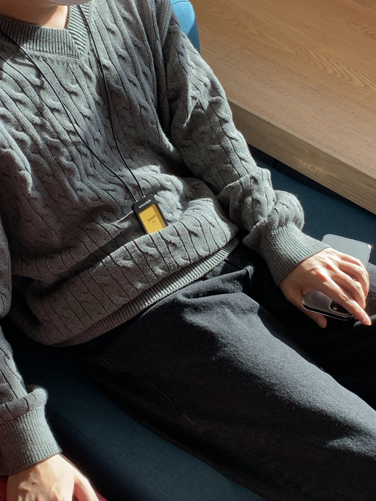 브라운야드의 니트요. 저는 한번 옷을 사면 오래 입는 편이라 재질을 많이 따지거든요. 특히 브라운야드 제품들이 재질에 신경을 많이 써서 참 좋아해요. 지금 입은 니트도 캐시미어가 함유돼 있어서 맨살에 입어도 포근한 느낌이라 추천하고 싶어요.