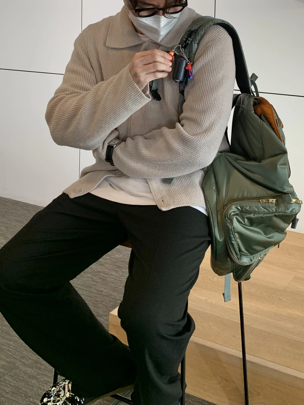 COS의 가디건이요. 보통 브이넥 가디건을 많이 입잖아요. 근데 이건 카라 가디건이어서 이것만 입어도 깔끔한 느낌을 내기 좋더라고요. 그리고 따뜻한 아이보리 색상이라서 가을 느낌을 내기에도 딱이에요. 조금 더 추워지면 코트 안에 입을 수도 있고요.
