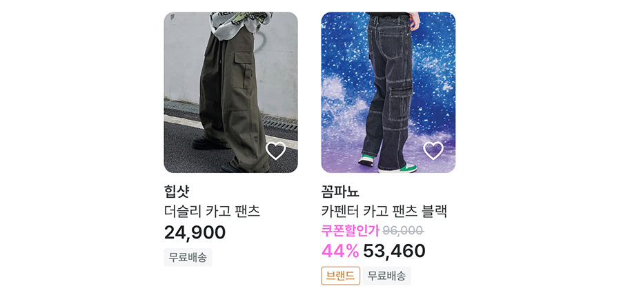 와이드한 핏으로 힙한 스타일을 연출하고 싶다면 ‘힙샷’의 ‘더슬리 카고 팬츠’를 추천해요. 바지 밑단에 스트링이 있어서 조거 팬츠로도 활용할 수 있는 아이템이에요. 색상은 카키, 라이트브라운, 블랙 세 가지로 선택지도 다양해요.