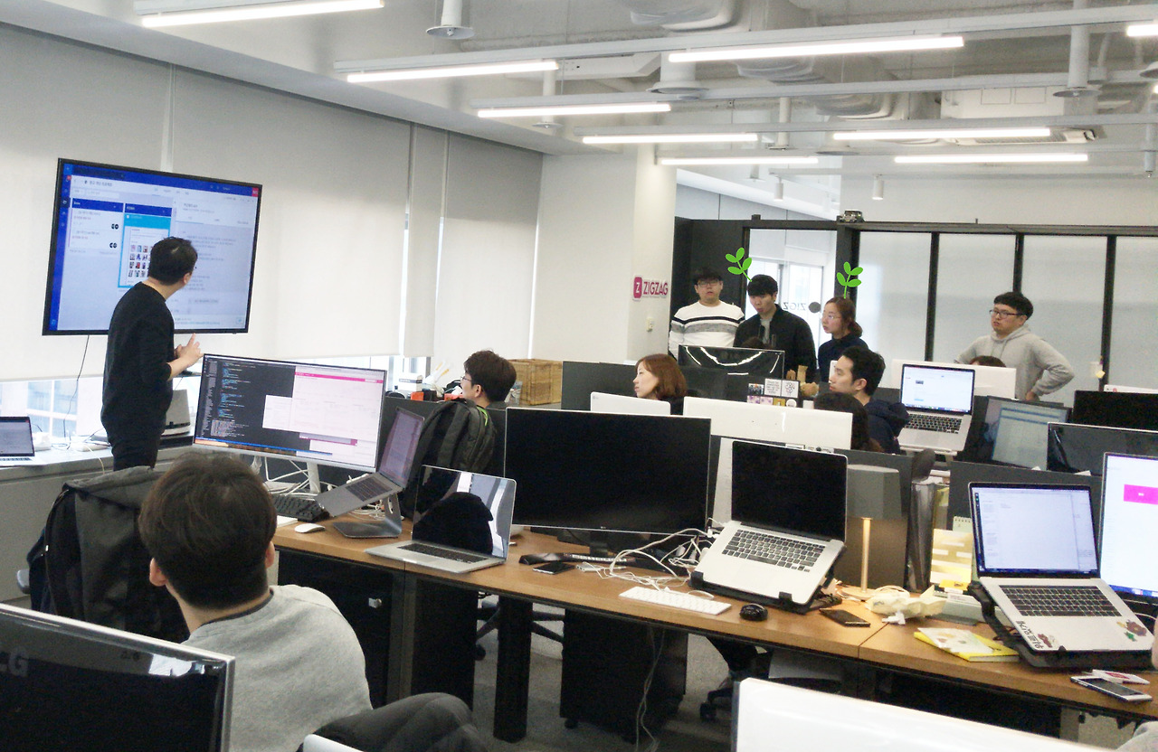 (신예) 코드 리뷰 이야기도 하고 싶어요. 일단 팀원들이 코드를 1차적으로 완성하고 나면 Github를 통해 Pull Request를 날리고 다른 팀원들이 코멘트를 달아주세요. 지그재그는 TF방식으로 업무가 분류되어 있는데 속해있는 TF와 관련된 코드라면 같은 TF의 동료가 우선적으로 코멘트를 달아주고, 그렇지 않더라도 팀원들의 코드 Pull Request가 올라오면 수시로 확인하는 편입니다. 다른 분들의 코드를 통해 배우는 것도 많고, 만약 눈에 띄는 개선사항이 보이면 그 부분에 대해서도 코멘트를 달아주세요. CTO이신 상민님은 틈틈이 저희 코드들을 골고루, 적극적으로 모두 체크해주시고 코멘트도 달아주시고요.