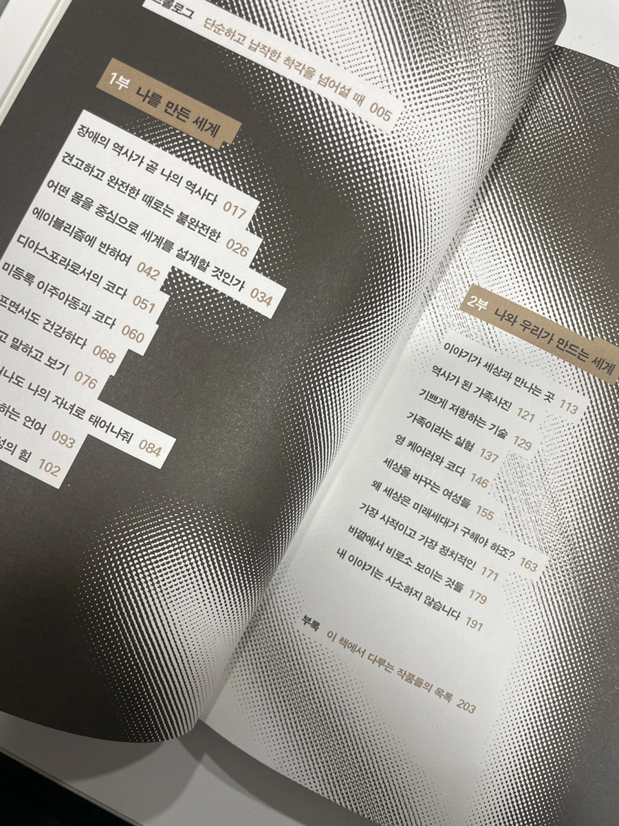 책 <고통에 공감한다는 착각>은 약 200p이며, 출판사 창비와 함께했다. 목차는 크게 1부 <나를 만든 세계>와 2부 <나와 우리가 만드는 세계>로 이루어져 있으며 1부에서는 주로 “코다”로서 살아온 이길보라의 이야기가 2부에서는 여성과 소수자가 이길보라와 함께한 이야기가 전개된다.